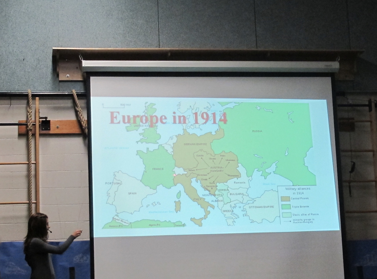두 번째는 이 행사의 하이라이트였던 프레젠테이션 시간이다. 6학년 학생 2명이 세계 1차, 2차 대전에 대해 직접 만든 발표자료를 가지고 프레젠테이션을 했다.