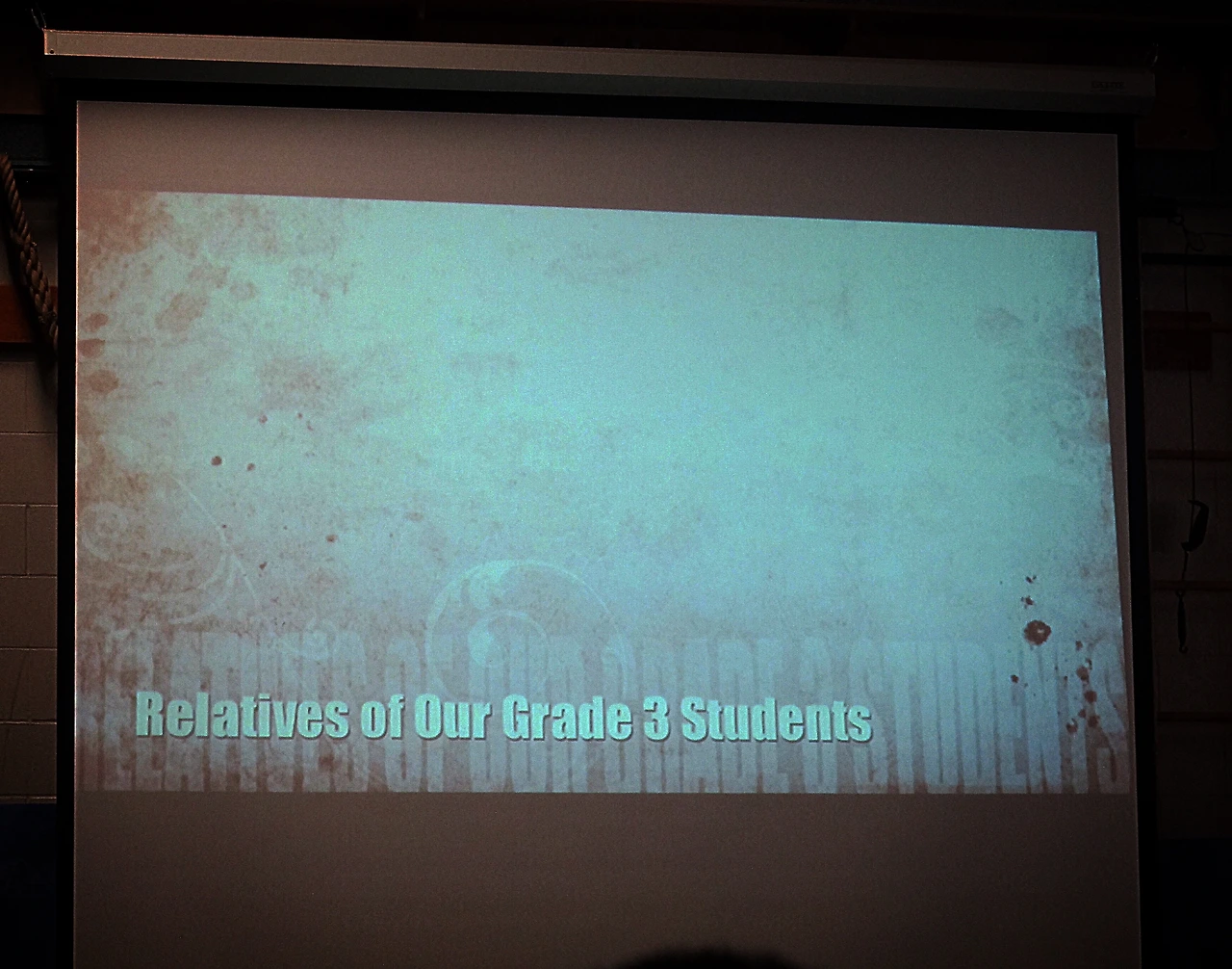 Assembly는 한국의 애국조회처럼 어떤 목적을 가지고 전교생이 강당에 모이는 시간이다. 말하자면 현충일 애국조회시간에 참전용사을 초대하는 프로젝트인 것 이다.