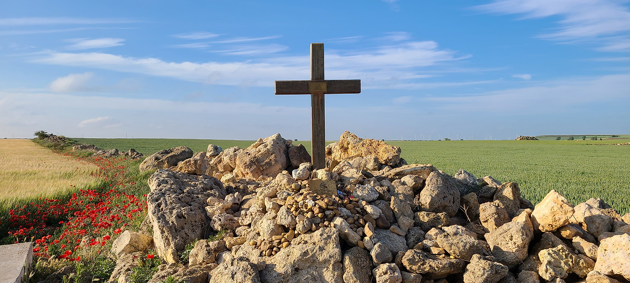 메세타에 흐르는 음악으로부터 연상된 부조리와 실존의 상념에 빠졌다가 온타나스Hontanas에 도착했다. 아침 결에 지나쳐온 산볼San Bol은 메세타의 오아시스다. 초원길에서 살짝 들어가 알베르게 하나만 덩그러니 서 있는 곳. 베드는 달랑 열두 개. 고원의 밤하늘을 하얗게 수놓는 은하수 덕분에 예약 경쟁이 극심하다. 엊그제 전화를 넣었더니 만실이란 응답에 아쉬움만 삼켰다. 순례자의 묘비로 보이는 돌무덤이 다가왔다. 망자는 여기서 순례를 멈춰야 했다. 하지만 이곳을 지나는 모든 이들이 고인의 간절한 유지를 기꺼이 이어받아 산티아고에 전해줄 것을 믿어 의심치 않는다. 나 역시 그러할 것이고.