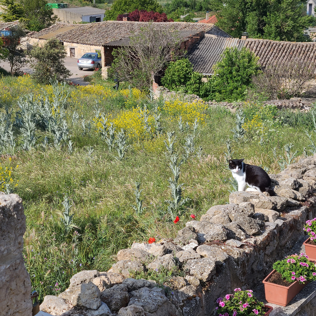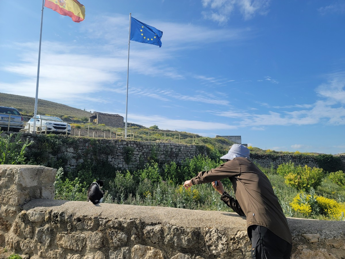 온타나스 초입에서 잠시 걸음을 멈추었다. 서울이라면 그늘 먼저 찾았을텐데 나그네 티를 내려는 건지 햇살이 쏟아지는 테이블을 자청했다. 아침 햇살이 그리 부담스럽지 않거니와 나도 몰래 쾌청한 하늘에 묵은 의념들을 말려 버릴 심산이었던 것 같다. 어디선가 나타난 길냥이 한 마리가 담벼락 위를 따라 쪼르르 곁으로 다가온다. 친해질 요량으로 손가락을 구부려 조심스레 코뽀뽀를 시도하니 냥이 특유의 밀당을 하며 도도히 지나친다. 온타나스는 조망이 아름답고 고요한 시골 마을이다. 여기서 멈춰 하루를 정리하는 것도 괜찮은 대안이나 미리 카스트로헤리스에 예약을 해둔 터라 어쩔 수 없이 행장을 꾸려 메마른 초원길에 다시 오른다.