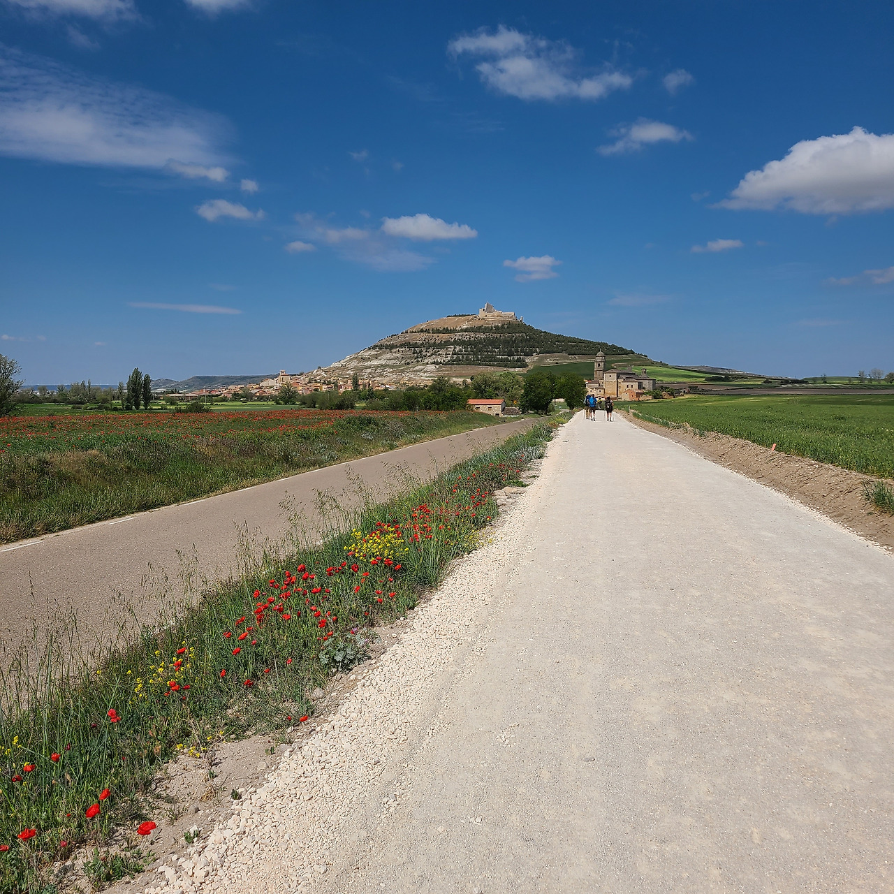 드디어 카스트로헤리스가 보인다. 둥근 종지그릇을 엎어놓은 형상의 야산 아래 마을이 있다. 정상에는 중세 때 요새로 쓰였을 법한 성채가 들어섰고 마을 초입에 낡은 성당 종탑이 높이 세워져 있다. 메세타에 위치한 마을은 저마다 독특한 풍미를 지닌 것 같다. 중세 분위기가 물씬한 이 마을에 머무는 이유가 있다. 오찬 메뉴로 한인 여사장이 운영하는 알베르게의 라면과 김밥을 택했다. 동포라 해서 특별한 서비스를 기대하진 않았다. 단지 이역만리에서 피곤에 찌든 동포 나그네들을 따스한 미소로 맞이하는 상상을 했다. 알베르게 앞에 도착한 시각이 12시. 문이 굳게 닫혀 있다. 오픈 시간은 오후 1시. 땡볕에 기다릴 곳이 마땅치 않다. 오리온 알베르게에서 예약한 로사리아Albergue Rosalia까지 1.3km 거리. 라면 한 끼를 먹으려 왕복 삼십 분 동안 걷는 수고를 자처했다. 숙소에 도착해 개인 정비를 마친 다음 빨래를 했다. 순례 중 처음으로 건조기를 사용하지 않았다. 쨍한 햇볕에 바람이 적당히 분다. 햇살을 받아 자연 건조되어 뽀송뽀송하게 마른 세탁물을 기대하며 라면 먹으러 가는 길이 즐거웠다.