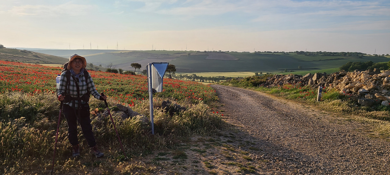 무협지에 등장하는 무림 고수들은 내공을 용천혈에 발산시킨 반발력으로 경공을 펼친다. 노르딕 워킹에서 폴을 지치는 것에 비견된다. 스틱 없이 걷는 워킹을 범부의 걸음에 비하자면 노르딕 워킹은 고수의 경신술이다. 가히 풀잎 위를 내달리는 초상비草上飛 수준이다. 여기서 한 걸음 더 나가 새들이 준 작은 깨달음 하나로 답설무흔踏雪無痕 내지 등평도수登萍渡水의 경지에 다다른 주인공의 기분을 한껏 음미했다. 마침 주위 풍광마저 감탄사를 자아내게 했다. 까미노가 그려낸 멋들어진 수채화에 심취해 셔터를 연신 눌렀다. 한참 뒤쳐져 있던, 어제 만났던 중국계 처자가 어느새 나를 따라잡더니 표표히 앞서 나간다. 절대고수가 펼치는 능공허도凌空虛道의 경신술이 한낱 필부匹婦의 소걸음에 잡힌 셈이다. 하늘을 찌르는 기예와 재능은 1%의 영감과 99%의 노력으로 만들어진다 했던가! 그녀가 선보인 우보만리의 신공이야말로 공간을 축지한 절세의 경공이었다.