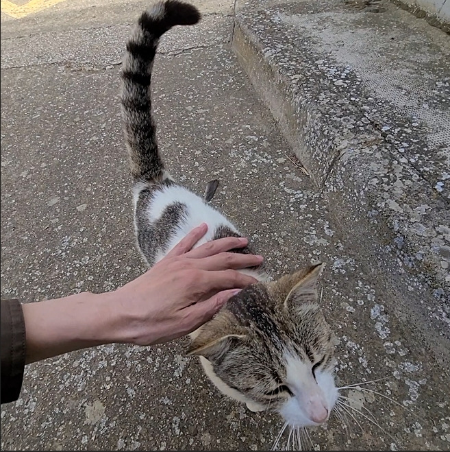 식사를 마치고 알베르게 앞마당을 거닐었다. 하얀색 수염이 멋들어진 냥이가 잔디밭을 어슬렁거렸다. 알베르게에서 키우는 고양이 같다. 오늘은 고양이를 무척 많이 만났다. 하쿠와 타타, 하타가 우리에게 와준 지 2년째 되는 날이라 그런 걸까? 핸드폰에서 하타 사진을 열어 하염없이 바라봤다. 낯선 우리 집으로 처음 온 날, 호기심 가득 차 동그래진 눈동자로 코를 킁킁거리며 조심스레 내 무릎 위로 올라오던 모습이 생생하다. 두 손바닥에 쏙 들어가던 아깽이들이 건강하게 자라주었다. 아빠를 보고 싶어 하는 하쿠와 타타가 별 일 없이 잘 지내고 있을는지.