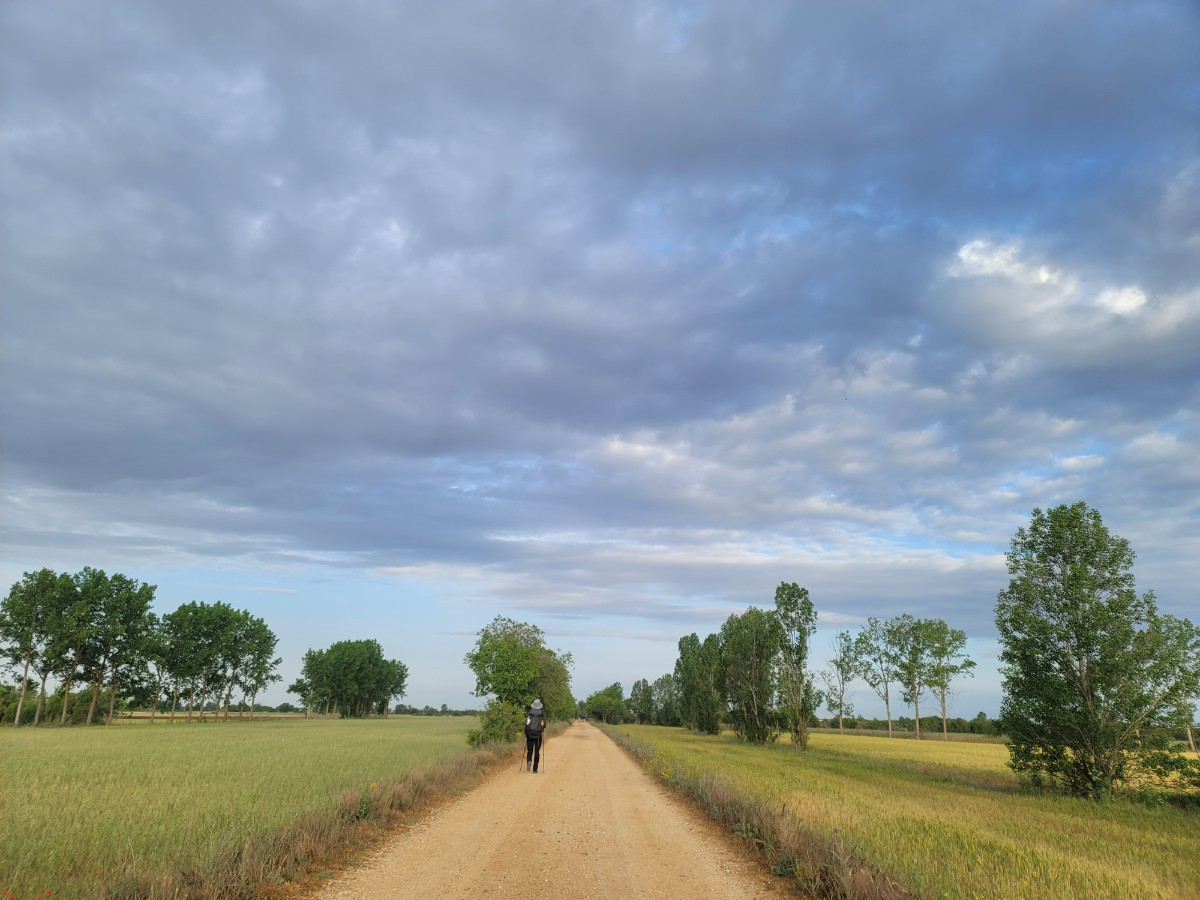 한낮 뙤약볕이 짐스러워 일찍 나설까 하다 비가 온다는 예보에 평소대로 출발하기로 했다. 비만 오면 진창길로 변하는 메세타 길을 고려해 동키를 예약해뒀다. 저녁부터 내린 비가 새벽에 그쳤다. 비 피할 곳 없어 신경 쓰이던 차에 잘 됐다 싶었다. 이런 예측 오류는 언제나 환영이다. 곰곰히 생각하니 근자에 늦은 밤이나 새벽까지만 비가 내렸다. 우리가 걷는 동안은 기상 여건이 괜찮았다. 해가 밝으면 비가 멈추는 게 건기에 접어든 지역 특성이라 막연히 짐작했다.