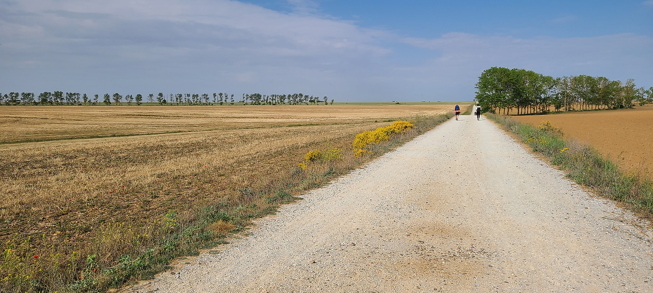 숙소에서 첫 번째 만나는 칼사디야 데 라 쿠에사Calzadilla de la Cueza 마을까지 무려 17.2km! 프랑스 루트에서 마을 간 거리가 가장 멀다. 오늘 걸을 구간의 2/3에 해당한다. 가는 중에 잠시 쉬거나 보급할 곳이 마땅치 않다. 출발 후 7km 떨어진 곳에서 영업하는 푸드 트럭이 기력을 보충할 유일한 휴식처다. 4,5km마다 지나치던 마을이 부재하여 평지임에도 꽤 부담스럽다. 오죽하면 이틀 전에 체력 좋은 김 선배조차 힘들었다 일렀을까! 직사광선을 면할 변변한 그늘이 없어도 그만이라는 각오를 다졌다. 길 옆에 다리 주무를 벤치가 있기만 바랐다. 맨바닥에 퍼질러 앉지 않으면 족하다 여기면서.