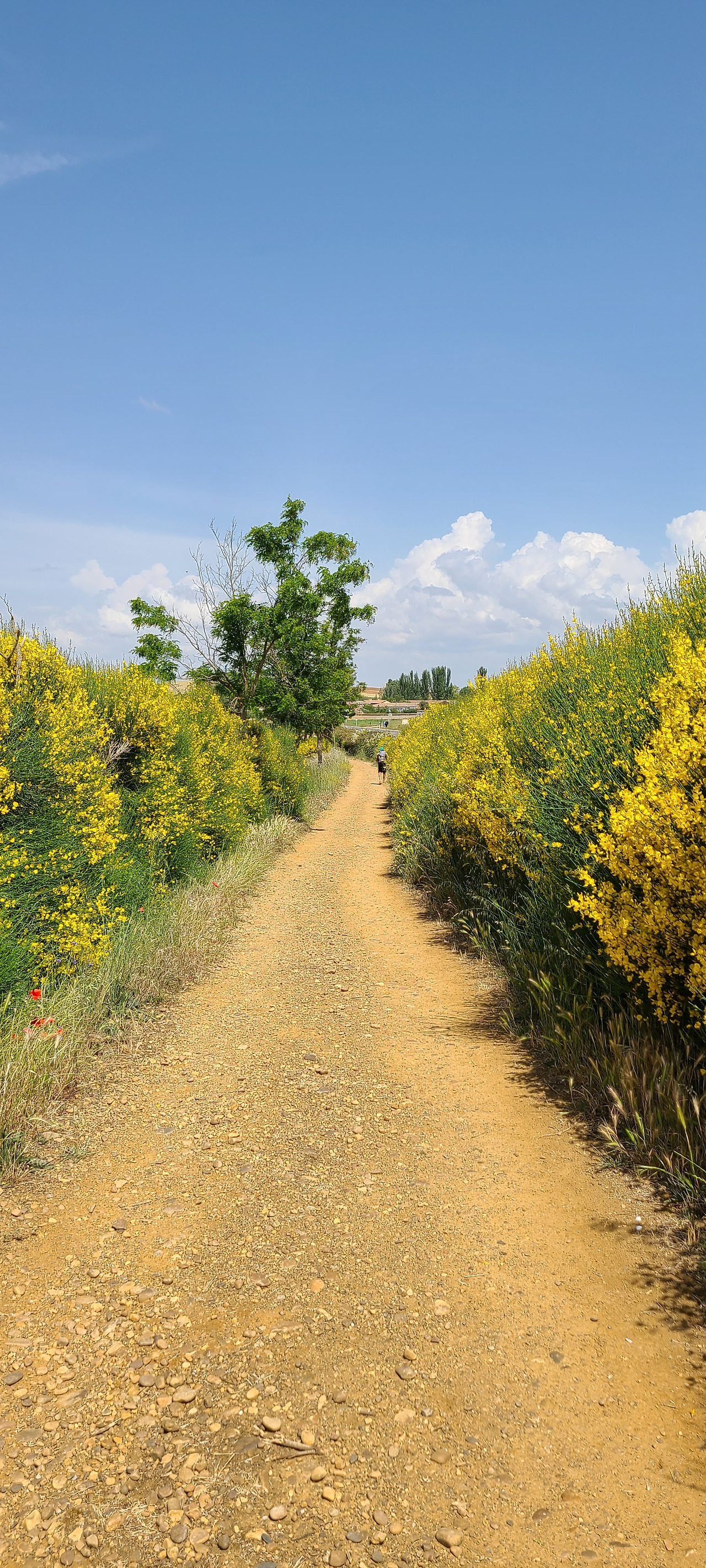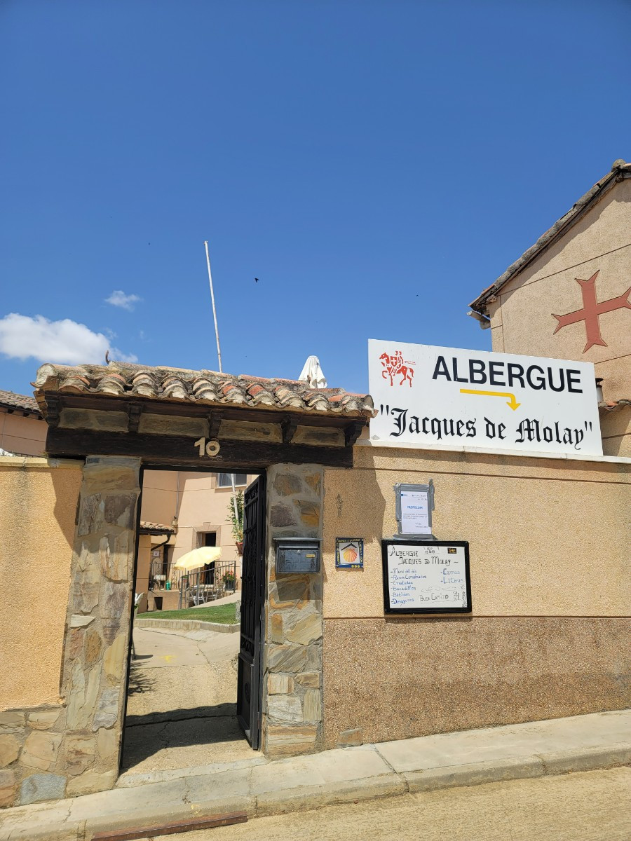 오후가 되자 레디고스Ledigos를 앞두고 누나 컨디션이 급전직하했다. 아무래도 더위 탓인 것 같다. 오전보다 페이스가 떨어졌다. 가벼운 봇짐에도 등허리가 발리고 발목과 정강이 주변이 뻐근하다 하신다. 나도 뜨겁게 내리쬐는 햇볕에 약간 체력이 달리는 기분이지만 숙소가 코 앞이라 안도했다. 향기 짙은 노란 꽃나무 사이를 천천히 걸으며 숙소로 향했다. 한 걸음에 한 걸음을 더하다 보니 어느새 야케스 데 모라이Albergue Jacques de Molay에 도착했다. 체크인하고서 배정받은 2인실에 배낭을 풀자마자 살짝 어지러웠다. 기력을 되찾을 겸 남들 눈치 볼 일 없는 전용실이라 마음 편히 낮잠을 청했다. 저녁을 먹으러 내려갔는데 만석이다. 어디서 기다릴까 고민하던 차에 어제 알베르게에서 만난 한국인 부자가 손을 들어 합석을 권했다. 한국인 순례객과 연 이틀 같이 묵은 건 김 선배 이후 처음이다. 자리에 앉으니 우리가 빨래를 걷어준 걸 어찌 알았는지 고맙다는 인사를 전해왔다. 예상밖의 답례에 별 일 아니라며 손사래를 쳤다. 아버지는 초등학교 교장 선생님으로 재직하다 몇 해 전 은퇴했다고 소개했다. 한눈에 봐도 점잖은 인상에 조근조근 차분한 어투가 교직에 어울렸다. 누나도 초등학교 교사를 명예 퇴직한 지 얼마 안돼 반가워하며 대화를 이어나갔다. 오랜만에 한국 이야기로 꽃을 피웠다. 교장 선생님께 연세가 있으시니 예약 가능하면 가끔씩 2인 전용실을 이용하라 추천했다. 가격 차이가 상당할 걸로 여겨 그간 2인실을 고려치 않았는데 앞으로 이용해 보마 화답하신다. 서로에게 필요한 정보를 주고받는 것 또한 까미노에서 흔한 풍경이다.