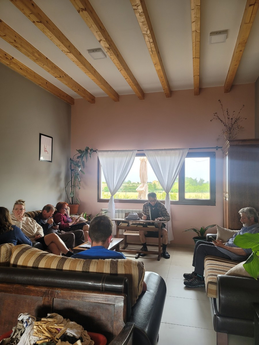 오후에 하릴없어 자료를 들춰보려 리셉션 책상에 앉으려던 찰나였다. 책상을 테이블 삼아 'ㄷ' 자 소파에 앉아 있던 투숙객들 중 한 여성 순례자가 수업 받을 준비를 다 했다고 농담을 건넨다. 내가 선생님 같다면서. 오케이 그러면 이제부터 시작한다고 답했다. 일순간 나를 포함해 주변에 앉은 순례자 모두가 빵 터졌다. 절반에 이른 순례 중 내가 내지른 가장 쾌활한 웃음이었다. 순례자들에게 내가 완전히 녹아들고 있음을 절감했다. 절반이 곧 시작이니 나의 진정한 순례는 이제 비로소 시작되었다.