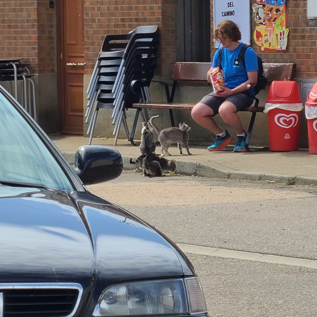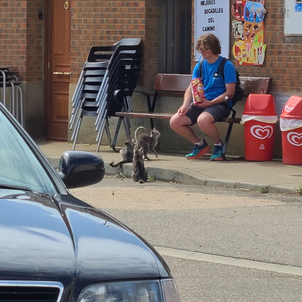 맛있냐는 질문에 떨떠름한 표정을 지었다. 주인장이 스페인어로 뭐라 뭐라 했다. 구글 번역기를 쓰려던 차에 누나가 치킨으로 바꿔주려나보다 일러줬다. 누나가 용케 스페인어를 알아 듣네! 뭔가 미심쩍었지만 순례 중인 우릴 위해 친절을 베푸시는구나 싶었다. 흔쾌히 그러마 고개를 끄덕였다. 순순히 메뉴를 바꿔줘 고마웠다. 배 부른 와중에 치킨을 남기면 실례라 여겨 간신히 다 먹었다. 아이스크림 먹겠냐는 제안에 고맙다고 인사했다. 생각치 않게 배불리 먹고 과식 후에 계산대에 섰다. 43 유로가 나왔다. 예상을 넘는 요금이 당황스러워 자초지종을 물었다. 물린 카요스와 아이스크림에 제공된 생수까지 함께 계산한 것은 물론이요 뽈뽀도 메뉴에 적힌 가격보다 비싸게 받았다. 단품은 더 받는다는 설명과 함께. 넉넉한 몸매만큼 후덕한 인상이라 별생각 없이 제안대로 따랐는데 우리 남매가 어리숙한 뜨내기손님인 셈이었다. 여우를 피하려다 호랑이를 만났다.