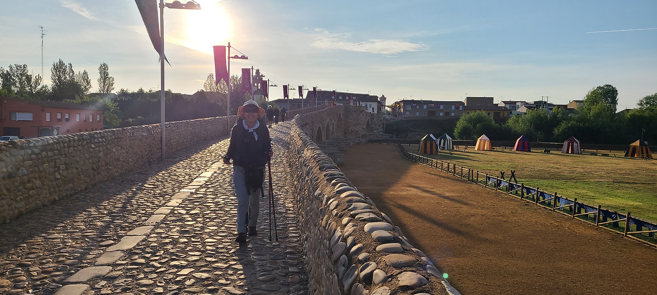 중세 시대 순례자들에게 병원과 휴식처를 제공한 오스피탈 데 오르비고Hospital de Órbigo에 들어섰다. 이 마을은 오르비고강을 가로지르는 아름다운 푸엔테 데 오르비고Puente de Órbigo 돌다리와 명예로운 길을 뜻하는 엘 파소 온로소El Paso Honroso의 마상 창 대결로 유명하다. 실연당해 낙담한 기사 수에로 데 킨뇨네스는 사랑의 굴레에사 벗어나려고 돌다리를 건너는 기사와 결투를 벌인다. 성 야고보 축일인 7월 25일 까지 한 달 동안 동료 기사들과 함께 창 삼백 개가 부러질 때까지 싸워 이겨 마침내 자신의 명예를 지켜낸 그는 성 야보고를 기리기 위한 순례를 떠난다. 매년 6월 첫째 주에 수에로를 기리기 위한 축제가 벌어지는데 때마침 오늘이 그날이다. 다리 옆 공터에 마상 창 시합 경기장이 마련되었고 인도 주변에 줄지은 노점들이 축제 준비에 한창이다. 아쉽게도 축제 전이다. 주택가 샘터에 앉아 지축을 울리는 말발굽 소리를 연상하다가 마을을 빠져나왔다.
