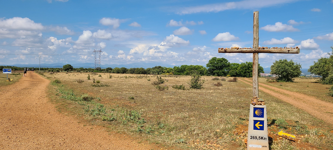 발데이글레시아스Valdeiglesias의 평원과 언덕을 지나 비야레스 데 오르비고Villares de Órbigo 마을에 세워진 순례자의 십자가에서 걸음을 멈췄다. 매서운 땡볕이 힘들었는지 별내댁 페이스가 조금씩 쳐져 그늘 쉼터에서 꿀 같은 휴식을 취했다. 현재 시각 10시 30분. 3시간만 더 걸으면 된다며 격려했다. 다시 길을 나섰다. 떡갈나무가 우거진 숲을 빠져나와 부드러운 흙길과 너덜 길을 거쳐 성 토르비오의 십자가Crucero de Santo Torbio 언덕에 도착했다. 아스트로가 전경이 훤히 내려다 보인다. 아스트로가를 4km 앞두고 산 후스토 데라 베가San Justo de la Vega에서 목을 축이기로 했다. 카페에 들어가 레몬 조각을 얹은 콜라로 갈증을 시원하게 날려버렸다.