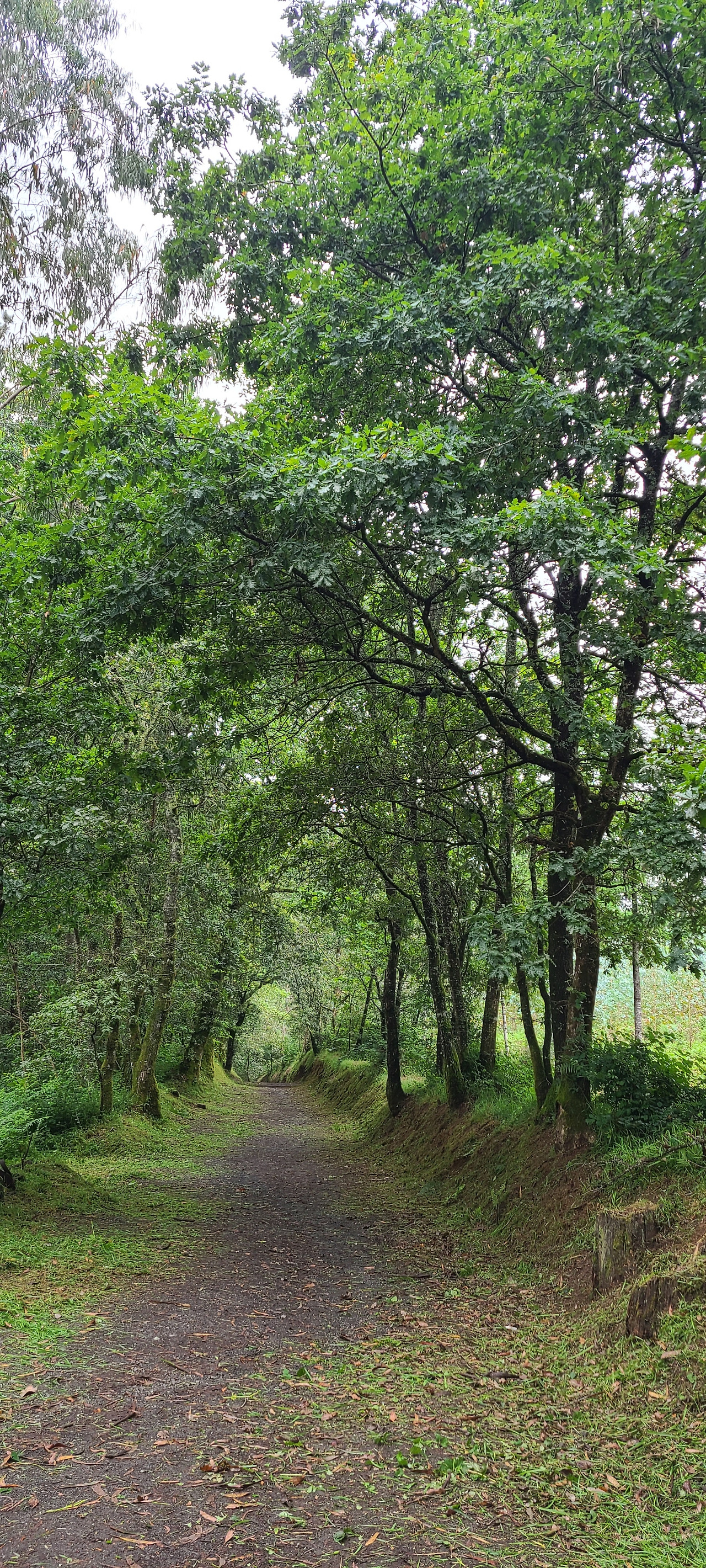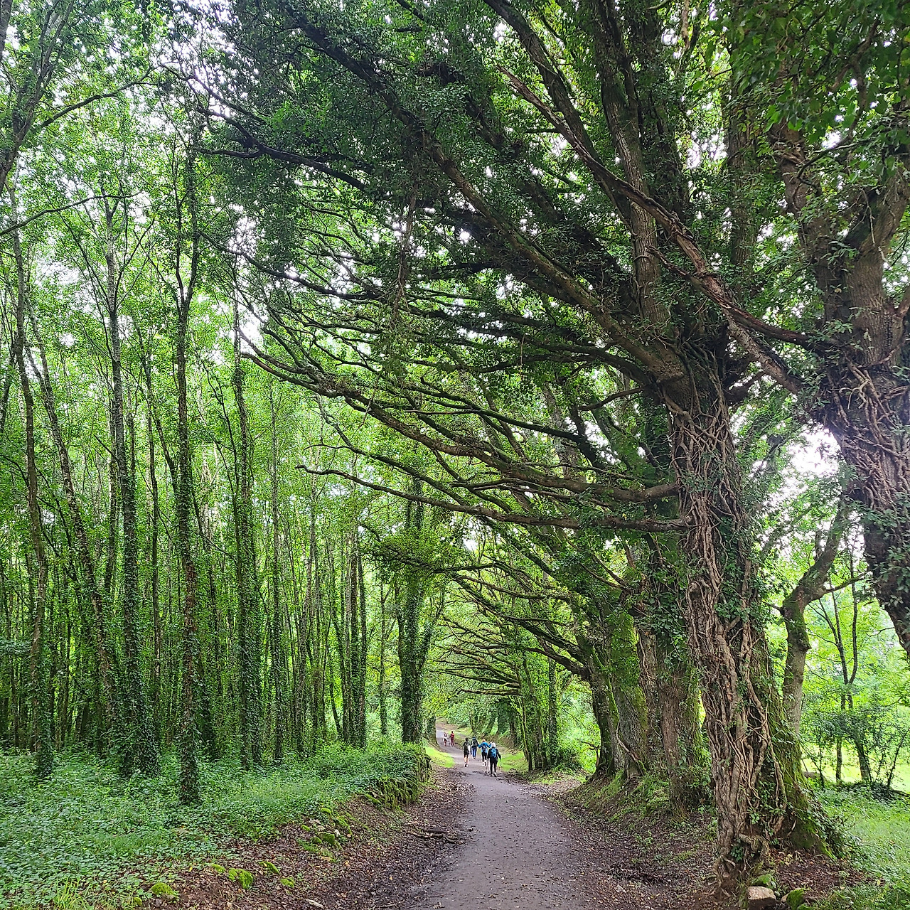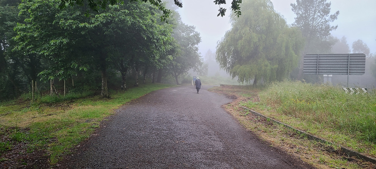 이미 여러 차례 느꼈듯이 갈리시아 지방의 우거진 숲은 늘 제주도의 원시림을 연상시켰다. 무성히 자란 나무에 덩굴과 이끼가 잔뜩 낀 자태가 영락없는 곶자왈 환상숲이나 비자림을 빼닮았다. 비록 현무암은 아니지만 초지 위에 돌담을 쌓은 것도 올레길에서 흔한 풍경이다. 까미노의 모든 길이 다 좋았지만 갈리시아 구간은 특히 여운이 깊었다. 산티아고가 지척이라는 기대감이 가벼운 흥분의 마루를 불러일으키되 조만간 대장정을 마친다는 아쉬움에 고양됐던 쾌감이 침잠의 골로 가라앉는 감정의 진폭을 겪어 그런 거 같다.