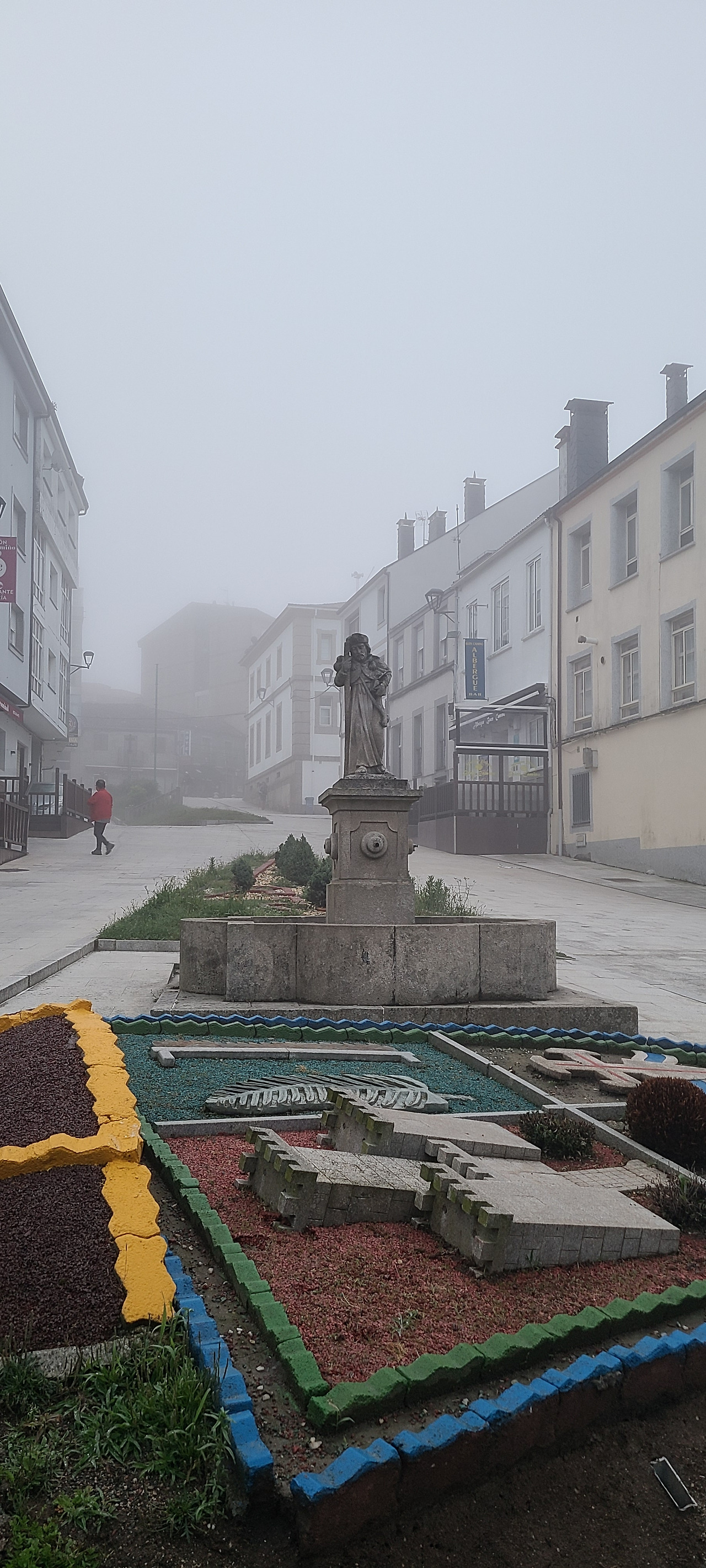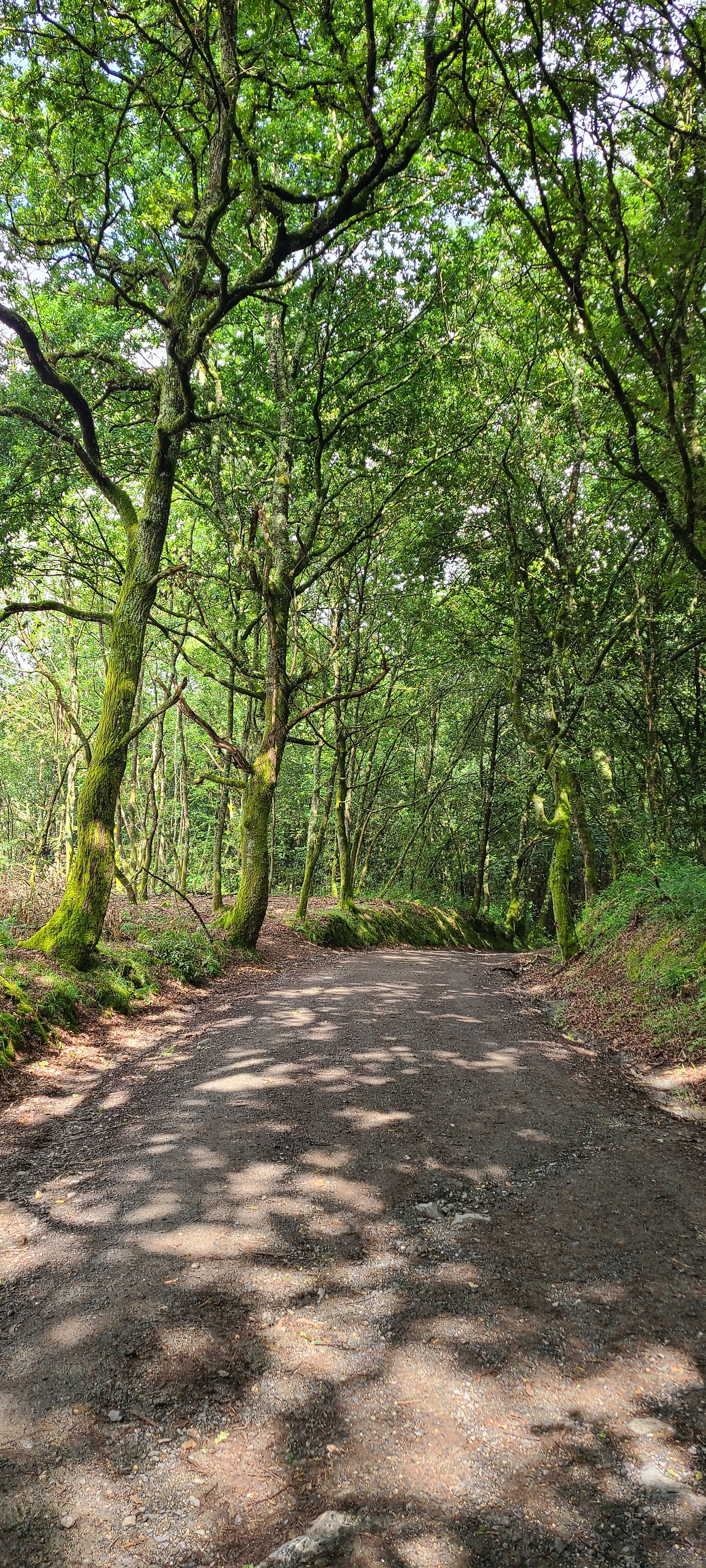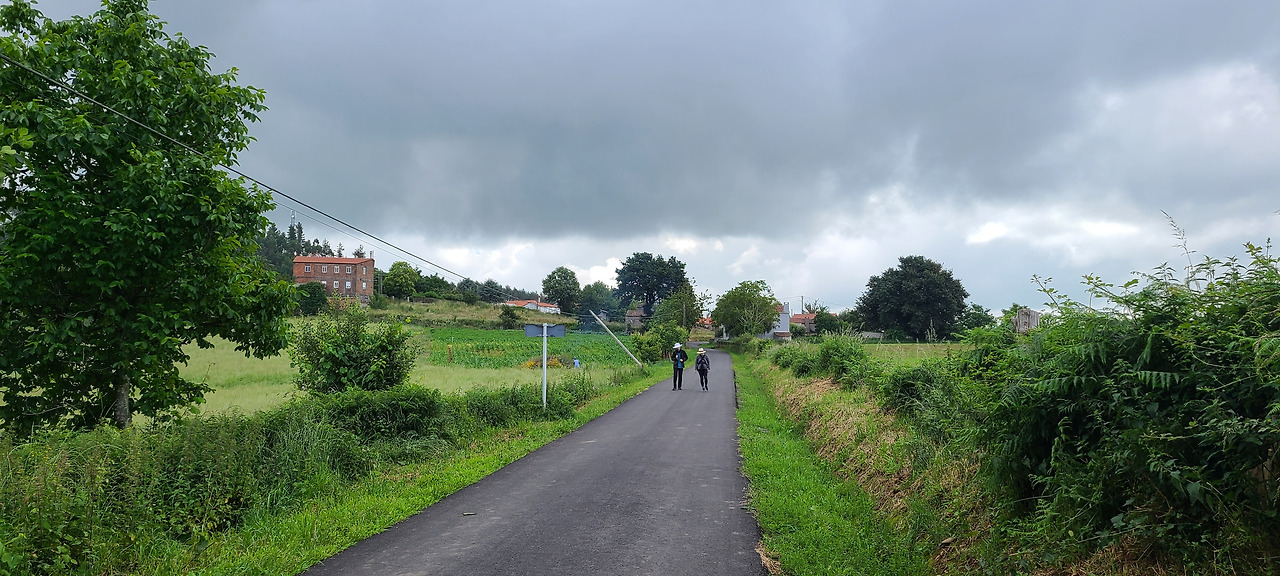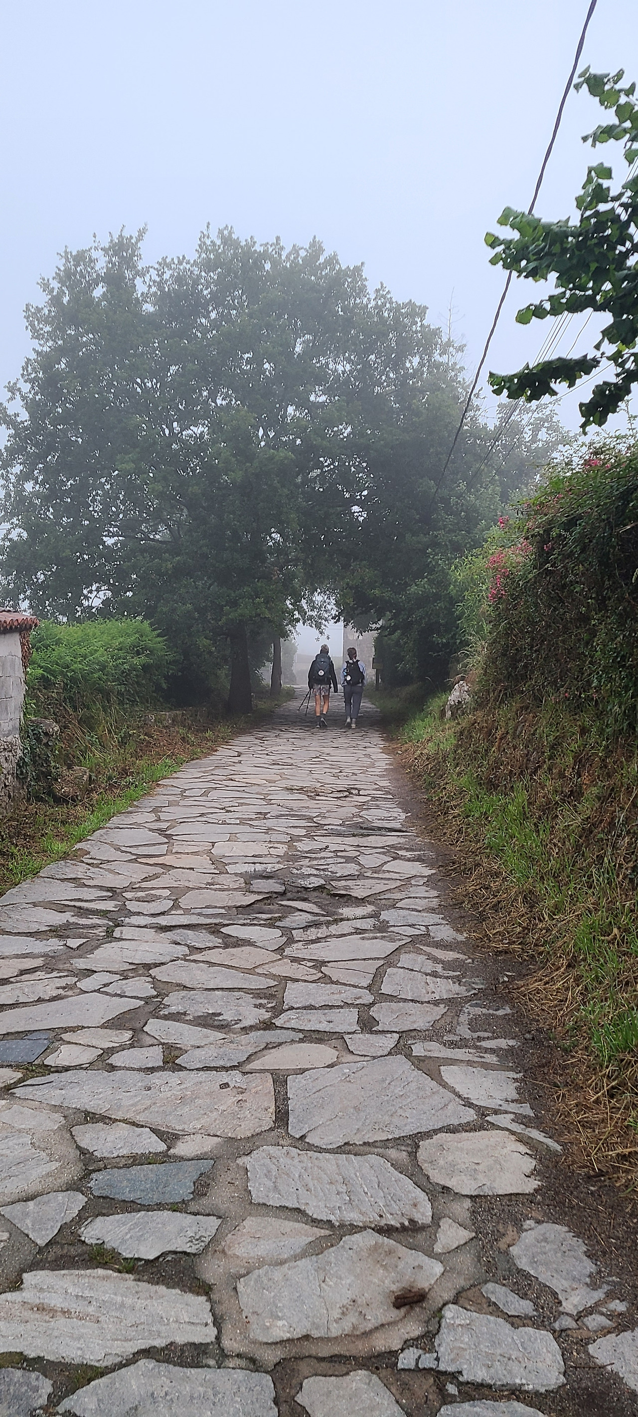 이미 여러 차례 느꼈듯이 갈리시아 지방의 우거진 숲은 늘 제주도의 원시림을 연상시켰다. 무성히 자란 나무에 덩굴과 이끼가 잔뜩 낀 자태가 영락없는 곶자왈 환상숲이나 비자림을 빼닮았다. 비록 현무암은 아니지만 초지 위에 돌담을 쌓은 것도 올레길에서 흔한 풍경이다. 까미노의 모든 길이 다 좋았지만 갈리시아 구간은 특히 여운이 깊었다. 산티아고가 지척이라는 기대감이 가벼운 흥분의 마루를 불러일으키되 조만간 대장정을 마친다는 아쉬움에 고양됐던 쾌감이 침잠의 골로 가라앉는 감정의 진폭을 겪어 그런 거 같다.