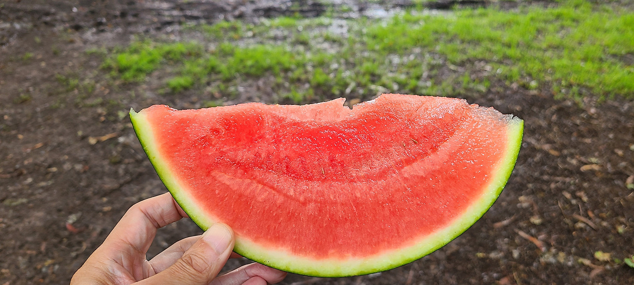 숙소까지 8km 남을 무렵 숲 속 벤치에 배낭을 내려 숨을 골랐다. 옆 벤치엔 한 청년이 도원경에 빠져 수박 반통을 잘라먹고 있었다. 돌아보면 부담될까 모른 척하며 쉬는데 혼자 먹긴 너무 많다며 입을 좀 거들어 달라는 농을 건넨다. 몇 조각 수박을 얻어먹었다. 올해의 첫 수박을 스페인에서 경험하다니. 태양빛을 잔뜩 받아 그런지 우리네 하우스 수박보다 훨씬 달고 맛있다. 어디서 왔냐 물음에 독일에서 왔다고 한다. 짧은 대화를 이어가는 사이에 미국 플로리다 출신의 부부가 5,6살로 보이는 어린 남매와 함께 자리로 다가왔다. 독일 청년이 건넨 수박을 한 조각씩 받아 든 아이들이 무척 귀엽다. 하루에 많이 걷지 못하지만 소풍 하듯 걸어왔단다. 이 페이스로 산티아고까지 갈 계획이라길래 격려해 줬다. 우리가 정담을 나누는 사이에 한 여인이 더 어린 꼬마를 데리고 지나쳐 갔다.