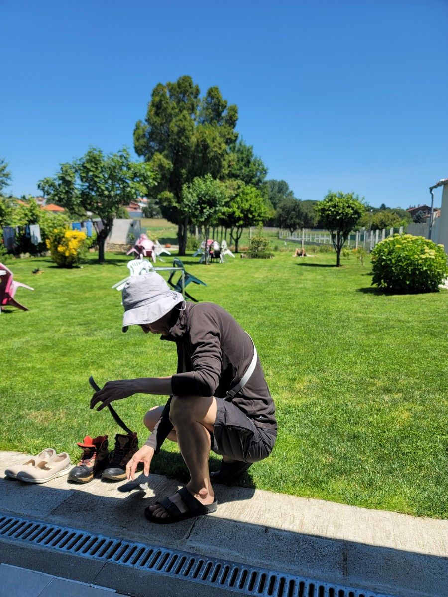 나바라에서 라 리오하를 지나 카스티야와 레온을 거쳐 갈리시아까지, 고유한 풍광이 각기 다르지만 이들을 잇는 기나긴 외줄기 까미노는 그 길에 선 내 깊은 가슴 속을 고요하게 울렸다. 눈으로는 아름답기 그지없을 호사를 즐겼으되 속내는 비경을 넋 놓아 바라보기 일쑤였다. 와~하는 외마디 감탄사가 절로 나오면 시각을 자극하는 절경이 사유를 촉구하는 뇌회로를 끊어 버린 바, 다른 생각할 여지없이 몰려드는 경치를 수동적으로 받아들이기 급급했다. 강제된 멍 때리기다. Otis Redding의 ‘(Sittin’ on) The dock of the bay(28위)’도 이와 분위기가 유사하다. 항구의 부두에 앉아 썰물을 바라보는 멍 때리기! 가스펠적 요소를 탈피하려는 오티스의 변신처럼, 라바코야 알베르게Albergue Lavacolla에서 오후를 맞은 순례객들은 경건함으로 중무장된 갑옷을 훌훌 벗어던지곤 한가로운 일광 아래서 축제 전야를 즐겼다. 잔디밭에 놓인 비치 테이블이나 그늘막에 앉아 시원한 레몬 맥주와 성혈빛 와인을 들이켜 눈앞에 둔 산티아고 입성을 자축했다.