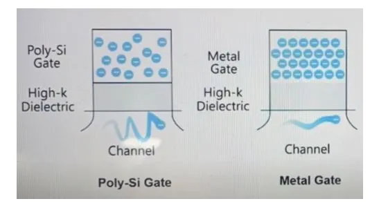 게이트에 전압을 걸면 소스에서 드레인으로 전력이 흐른다. 전압이 걸리지 않으면 전기가 통하지 않는 부도체 상태이다. 이 것이 트랜지스터 작동 원리다. 반도체가 미세화된다는 것은 칩 사이즈뿐만 아니라 게이트, 소스, 드레인의 크기도 줄어듦을 뜻한다. 당연히 게이트의 폭, 소스와 드레인 사이의 간극도 좁혀진다. 게이트에 전압을 걸 때 일정한 수준 이상의 전압이 걸려야 소스와 드레인에 전기가 통하는데 이를 유효 전압이라고 한다. 미세화가 진전되면 유효 전압도 줄어들겠지만 칩과 회로 선폭이 더 줄어들게 되면 의도하지 않은 전력이 실리콘 베이스의 기판으로 전기가 샌다. 이를 전력 누설이라고 한다.