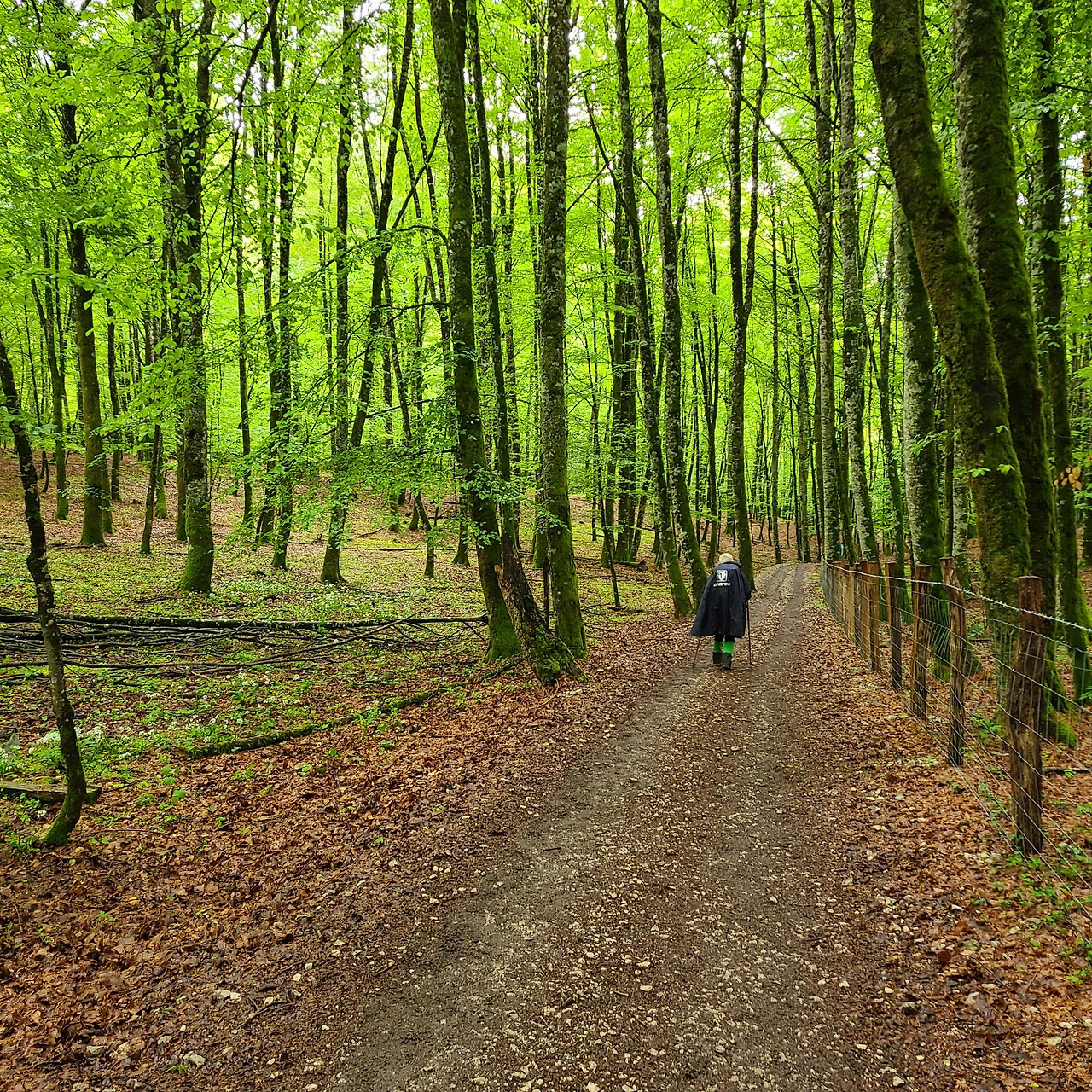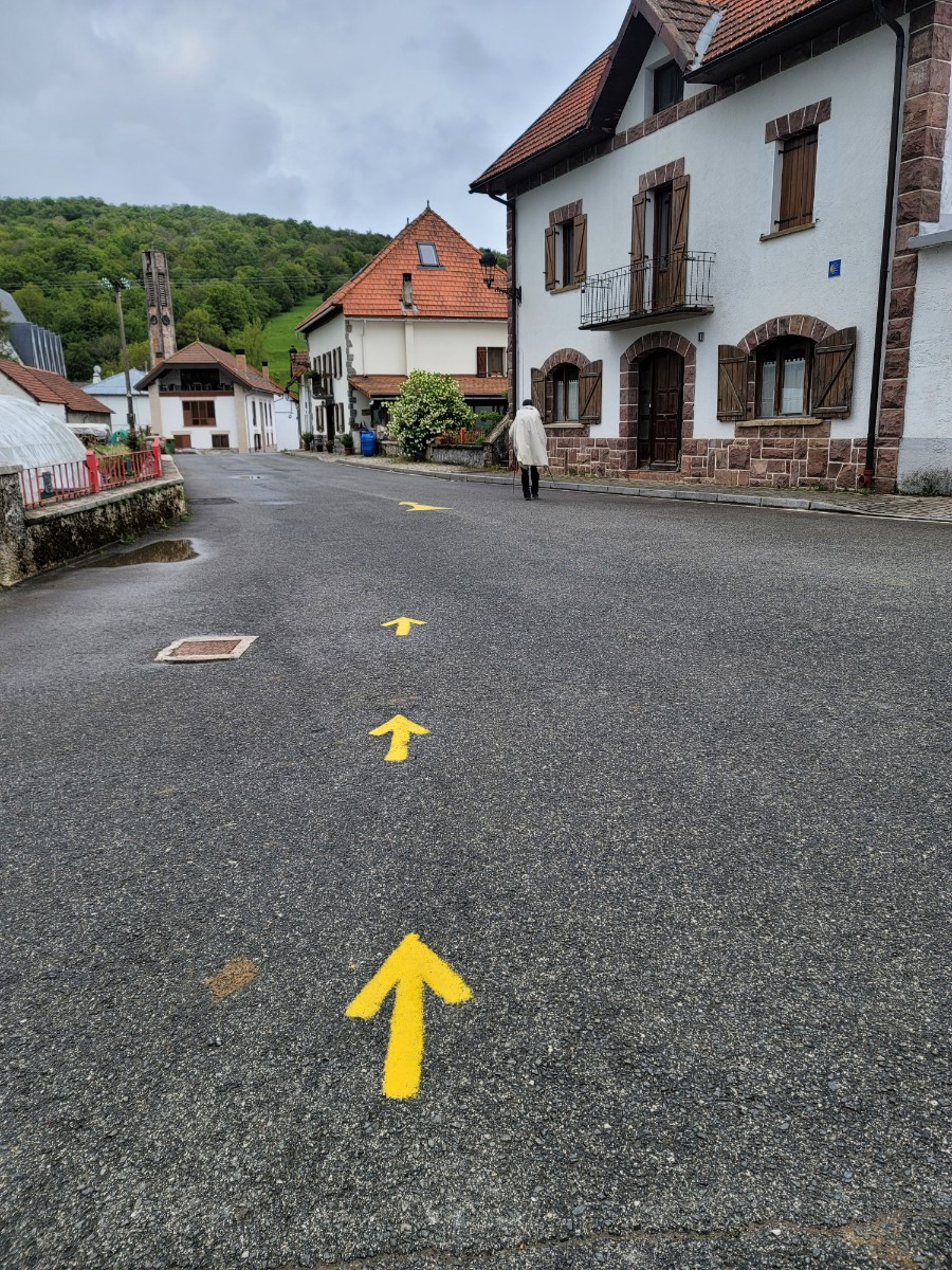 출발지인 론세스바예스는 해발 952 m, 오늘 목적지인 수비리는 고도 528m다. 가끔 짧은 업힐 구간이 나오지만 전체적으로는 피레네 산맥을 내려가는 하산길이다. 부슬비에 땅이 젖은 진창길이 제법 미끄러웠다. 걷기가 수월치 않다. 게다가 에로고개에서 수비리까지 마지막 4km 내리막 암반 길은 맑은 날에도 미끄럽다는 악평이 자자하다. 혹시 모를 낙상을 신경 써야 했다. 그럼에도 불구하고 수비리로 가는 코스는 전반적으로 앙꼬 없는 찐빵처럼 싱거웠다.