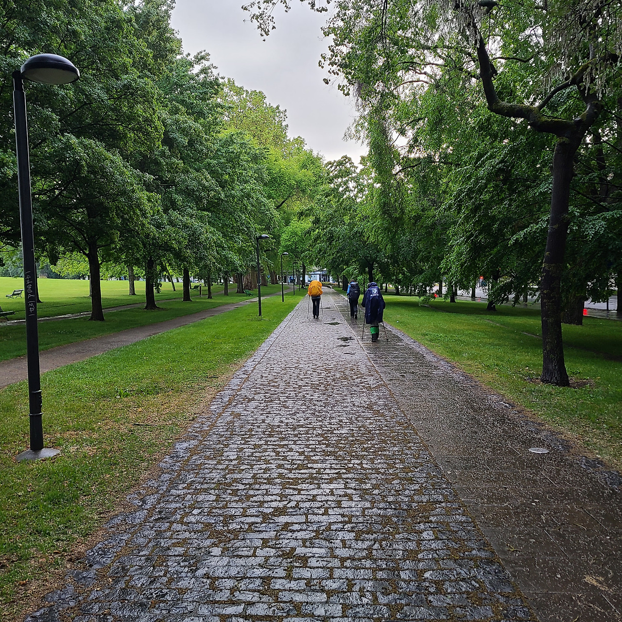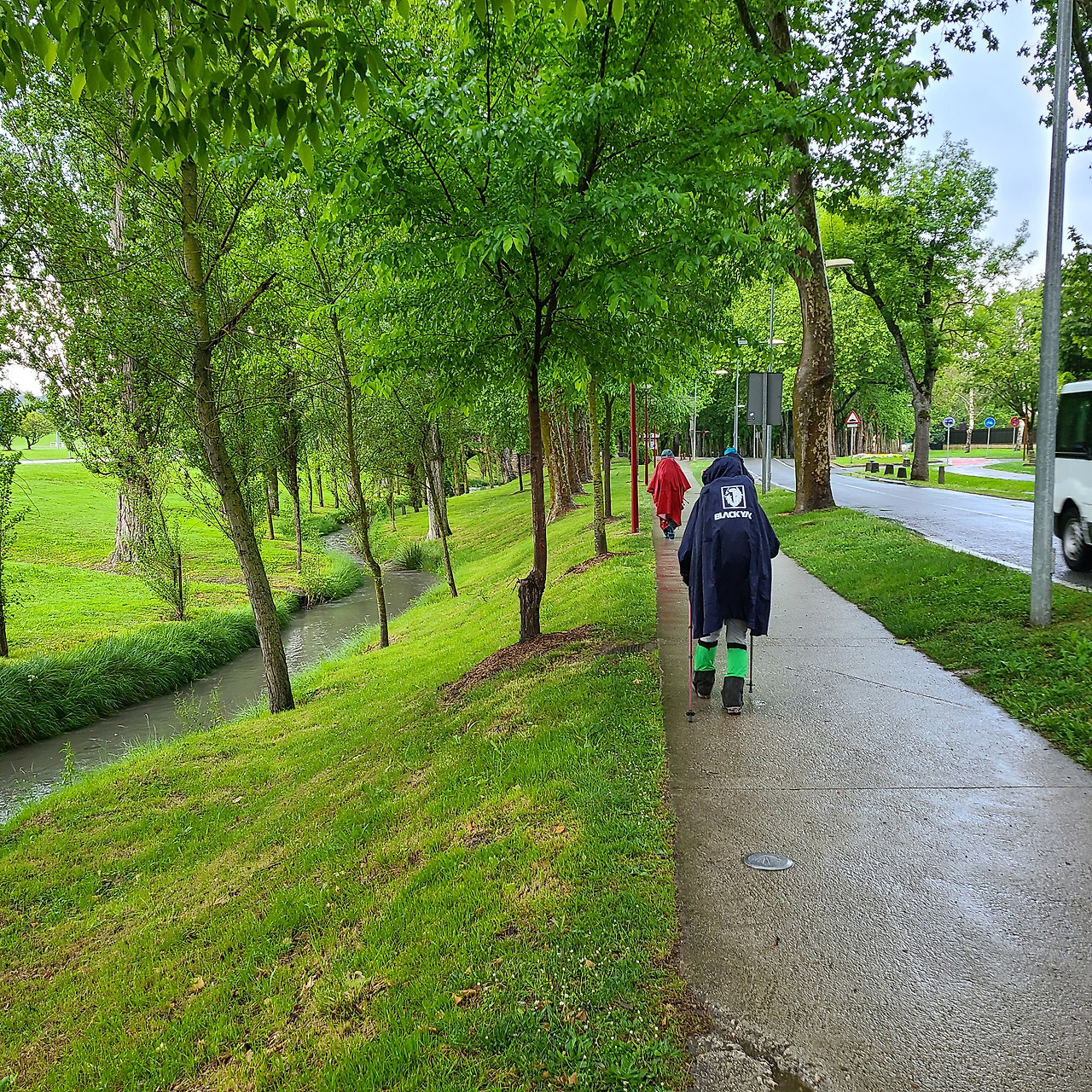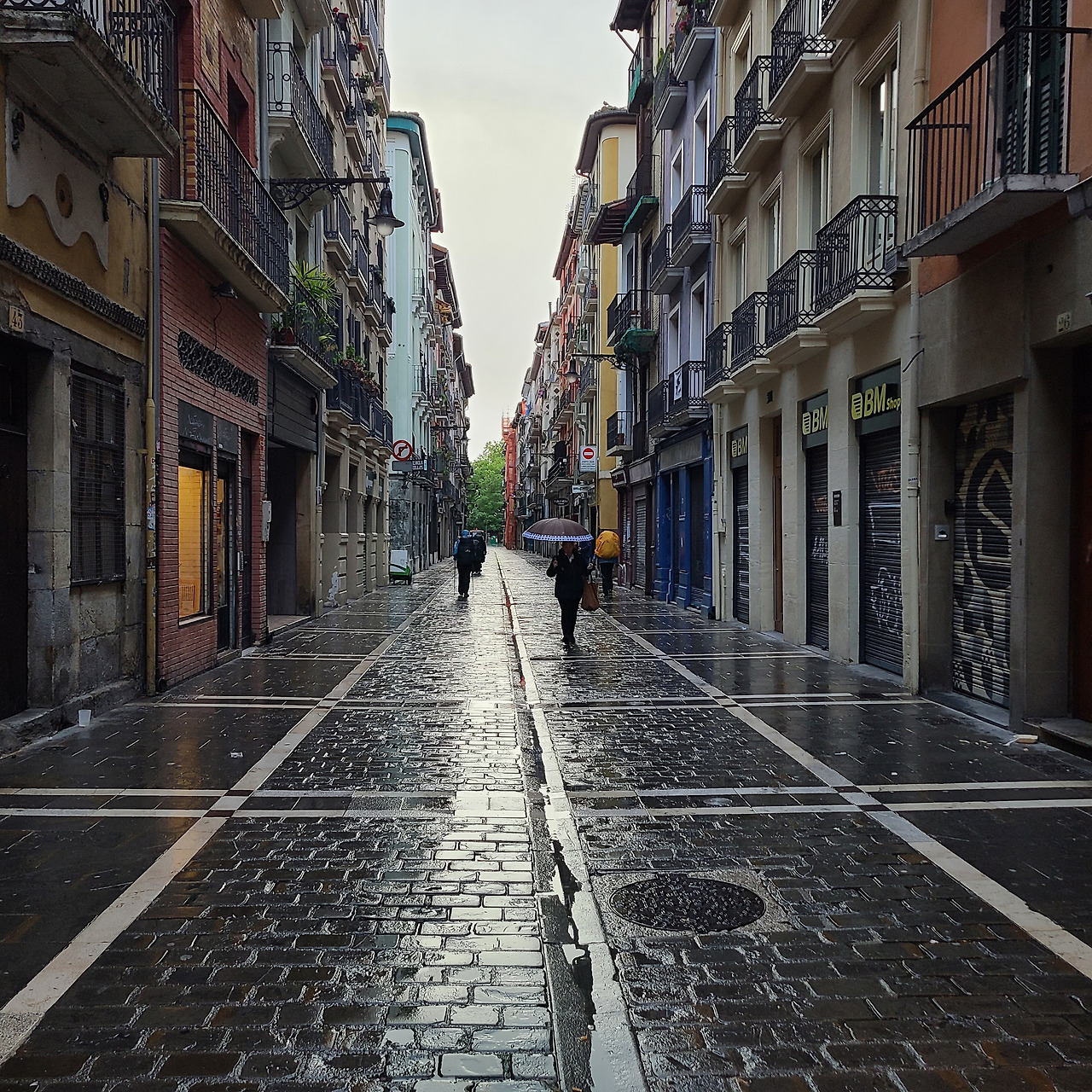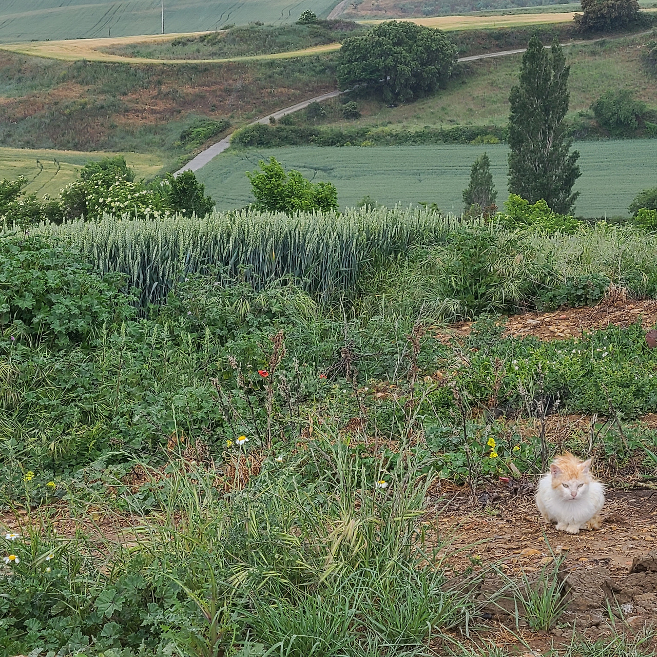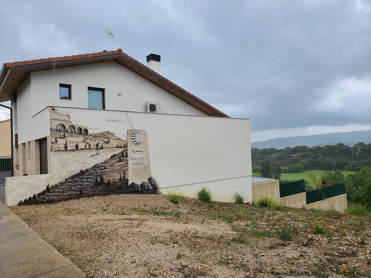 쏟아지는 비를 무릅쓰고 예정한 시간에 숙소를 나섰다. 숙소 주변이 번화가였나 보다. 토요일밤을 즐긴 취객들의 흔적이 인도에 가득했다. 너저분하게 어질러진 캔과 플라스틱 컵, 먹다 버린 안주를 피해 가며 조심스레 구도심을 빠져나왔다. 시내에서 팜플로나 시외를 가리키는 가리비 표식이나 까미노 화살표를 종종 놓치는 경우가 있다고 들었다. 앞선 순례자들을 따라 눈치껏 그리 어렵지 않게 교외로 접어들었다. 한 시간가량 빗길을 걸어 시수르 메노르Cizur Menor 마을에 도착했다. 비를 피해 요기도 할 겸 여기서 잠깐 쉬기로 했다. 아뿔싸, 주일 아침이라 용케 찾은 바가 문을 닫았다. 어찌할까 고민하다 버스 정류장에서 비를 피했다. 벤치에 앉아 챙겨온 빵과 사과로 브런치를 대신했다. 시수르 마요르Zizur Mayor를 지나자 광활한 구릉지에 온통 밀밭이 가득 들어섰다.