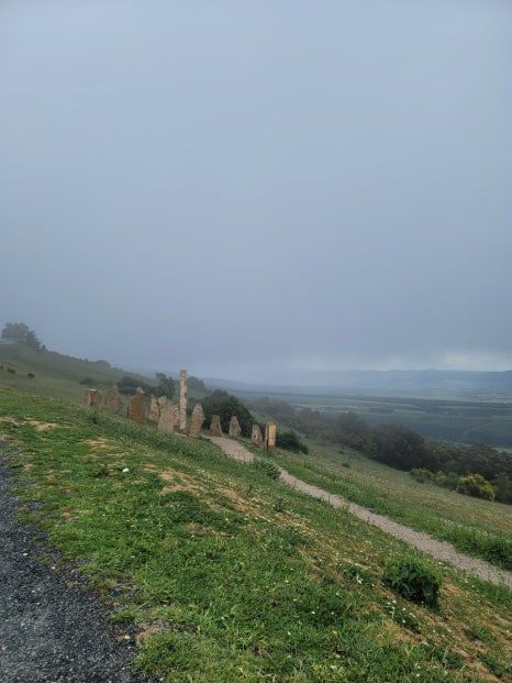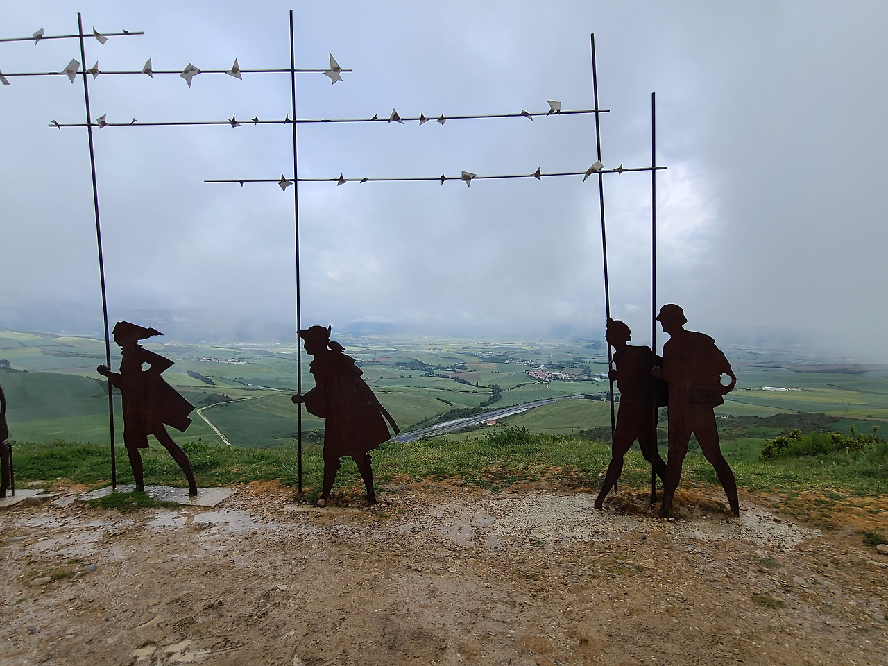 용서의 언덕 조형물 앞에서 누나와 이리저리 포즈를 취했다. 사진을 찍는 사이에 비구름이 물러난 틈으로 해가 고개를 내밀었다. 목적지를 향해 발길을 돌렸다. 언덕을 내려가는 계단길 왼쪽 옆에 정체불명의 커다란 돌기둥들이 둥그렇게 줄지어 서있었다. 얼핏 보면 스톤헨지나 고인돌과 닮았다. 궁금증이 일어 안내판을 읽었다. 이 돌기둥들은 스페인 내전으로 정권을 잡은 프랑코 정권에 학살당해 암매장된 아흔두 명의 희생자들을 기리기 위한 추모비다. 프랑코 독재 치하에서 삼십 년 동안 이십만 명이 넘게 죽임을 당했다. 가운데 가장 큰 돌기둥은 프랑코 정권에서 희생당한 이들을 의미한다. 그 주위로 둥그렇게 둘러싼 작은 돌기둥들은 인근 마을별로 희생자 이름을 새긴 상징물이다. 용서의 언덕을 지나치는 순례자들 중에 이곳에 눈길을 돌리는 이들이 몇이나 될지 궁금했다. 그간 한국에서 읽었던 수많은 순례 기행문 어디서도 희생자를 추모하는 이 기념물을 주목하지 않았다. 용서의 언덕이라 명명했다면 마땅히 이곳이 더 부각되도록 세심히 배려했어야 한다는 아쉬움이 컸다.