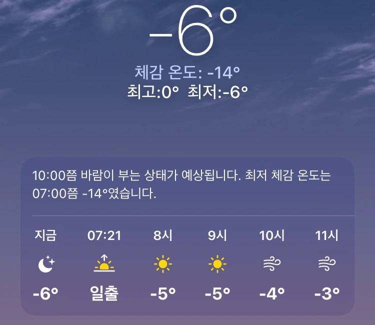 하지만 이름과 걸맞게 이번 주는 주간 날씨가 온통 영하로 표시될 만큼 정말 동장군의 위세가 대단하다. 어제도 영하 6도, 체감온도는 영하 14도까지 내려가는 날씨여서 달리기 준비물을 챙기는 나를 보고 아이도 추우니까 하루 쉬는 것은 어떤지 제안하기도 했다. 아이 말대로 하루 쉴까 잠시 고민하기도 했지만, 영하의 날씨라고 해서 달리기는 쉬는 것은 자존심이 상했다.