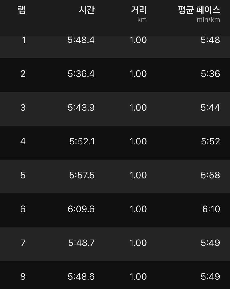 러너는 이렇게 하나의 달린 순간순간들이 축적되어 만들어진다는 생각이 들었다. 단 한 번의 달리기만으로 러너를 평가하기는 어려운 이유가 러너의 지난 흔적들을 살펴보지 않는다면 그의 달리기 세계를 깊게 알 수 없고 수박 겉핥기식의 이해에 머무를지도 모른다. 오늘의 달리기를 교훈 삼아 힘들고 포기하고 싶을 때 오늘을 기억하며 포기하지 않고 끝까지 달릴 것이다.