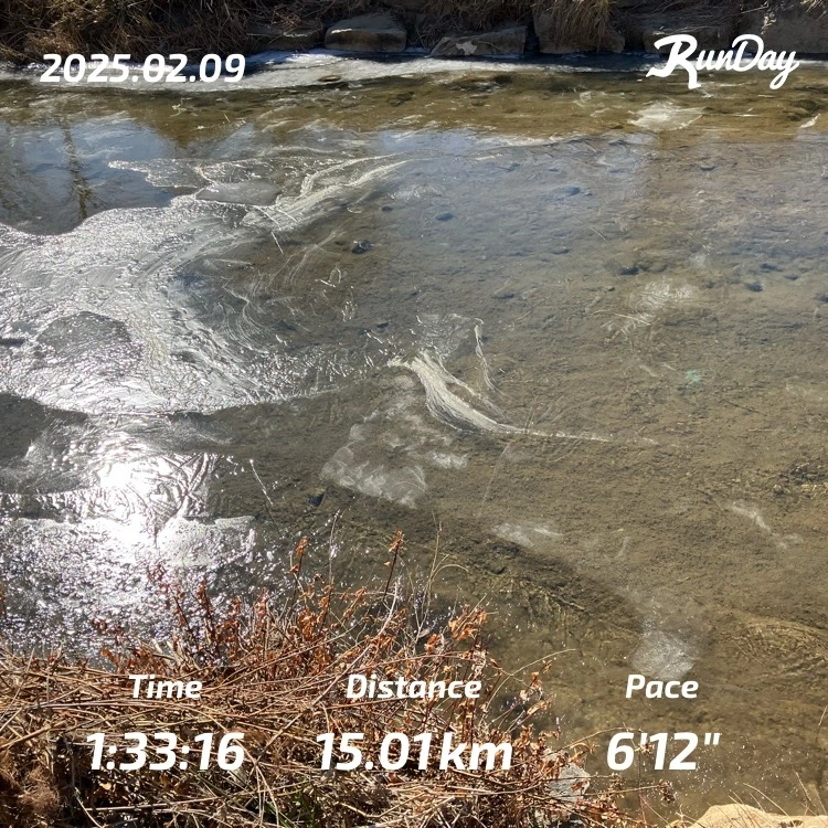 강풍이 불어 예상했던 것보다는 더 추웠지만 그럼에도 불구하고 일요일 15km 달리기를 포기할 수는 없었다. 가볍게 몸을 풀고 익숙한 코스를 달렸고 바람 때문에 호흡이 조금 힘들기는 했지만, 이런 상황에서도 호흡하는 법을 배워야 한다고 생각하며 페이스를 조절하고 호흡에 집중했다. 폐 안을 가득 채운 찬 공기로 숨 쉬기 불편할 때도 있었지만 혹한의 추위는 아니라 참을만했다.