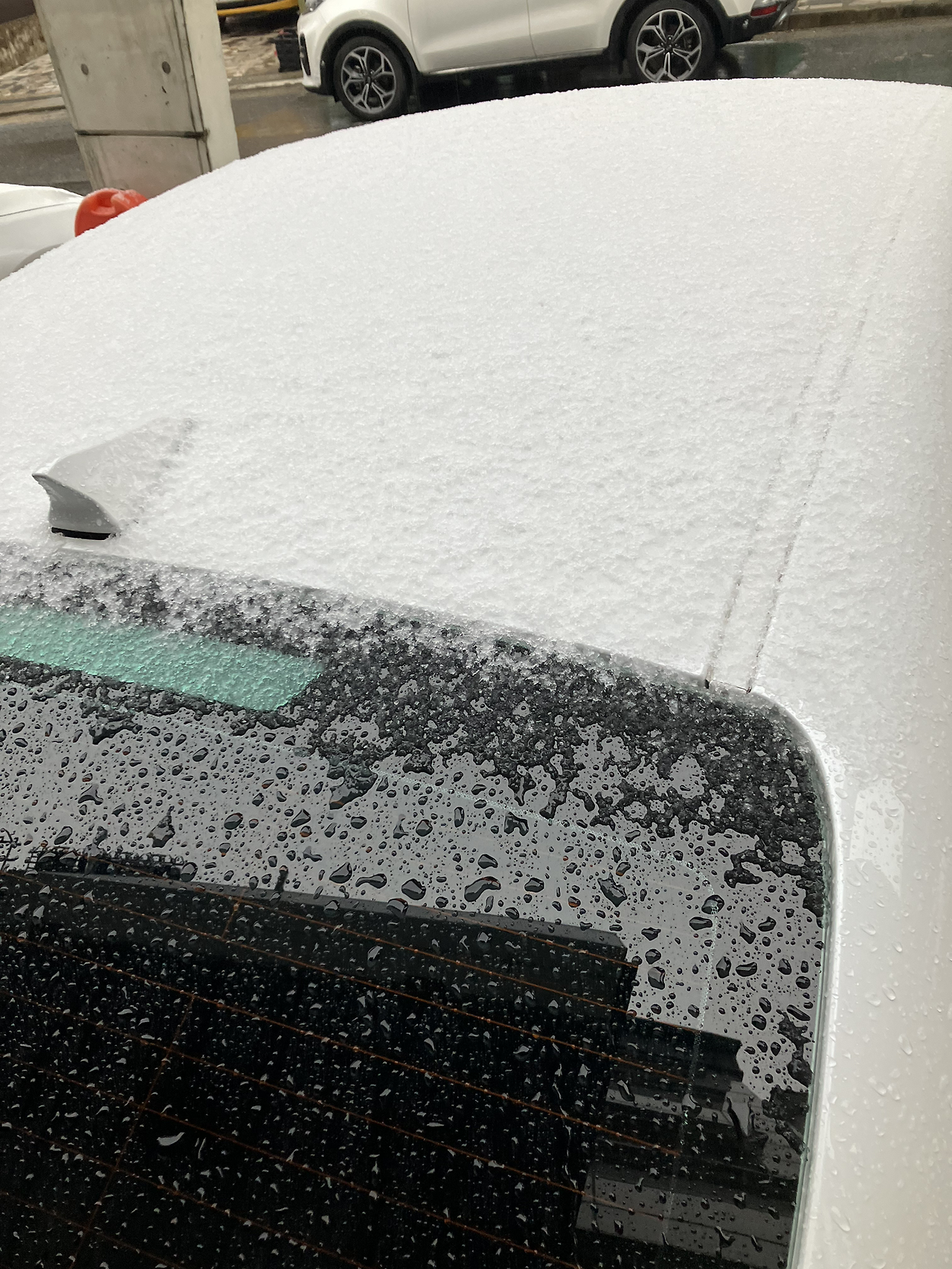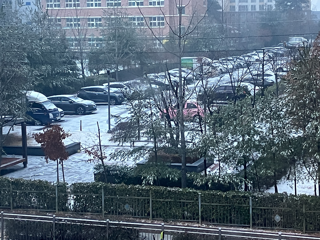 특히 눈길주행이 익숙하지 않은 곳이라 눈 쌓인 도로를 달리는 것은 엄청난 주의와 집중력을 필요로 하기에 일기예보 중 눈 소식은 항상 관심을 가지고 확인한다. 어젯밤 잠자리에 들기 전에 스마트폰 충전을 하는데 눈 예보가 있길래 설마 또 눈이 오겠어라고 생각했지만, 지난주 금요일 아주 잠시였지만 앞이 보이지 않을 정도로 눈이 왔기에 '설마'라는 생각은 '아니나 다를까'로 바뀌었다.