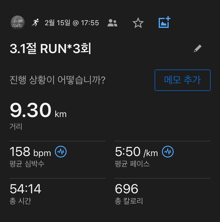 그리고 3.1절런까지 하고 싶어 3.1km를 3번 달려 9.3km 기록을 남기고 싶어 동장군 취임식 챌린지 마지막 도전과 병행하면 좋을 것 같았다. 물론 3월 1일에 3.1km를 달릴 예정이지만 작년 815런에서 실패한 아쉬움을 달래는 9.3km 달리기는 3.1절런 이상의 의미가 있었다. 더욱이 감정코칭 시연 평가가 생각보다 일찍 끝나서 홀가분한 마음으로 토요일 오후 달리기를 할 수 있어, 시연 평가가 끝나자마자 어떻게 달릴지 생각하며 바로 집으로 갔다.