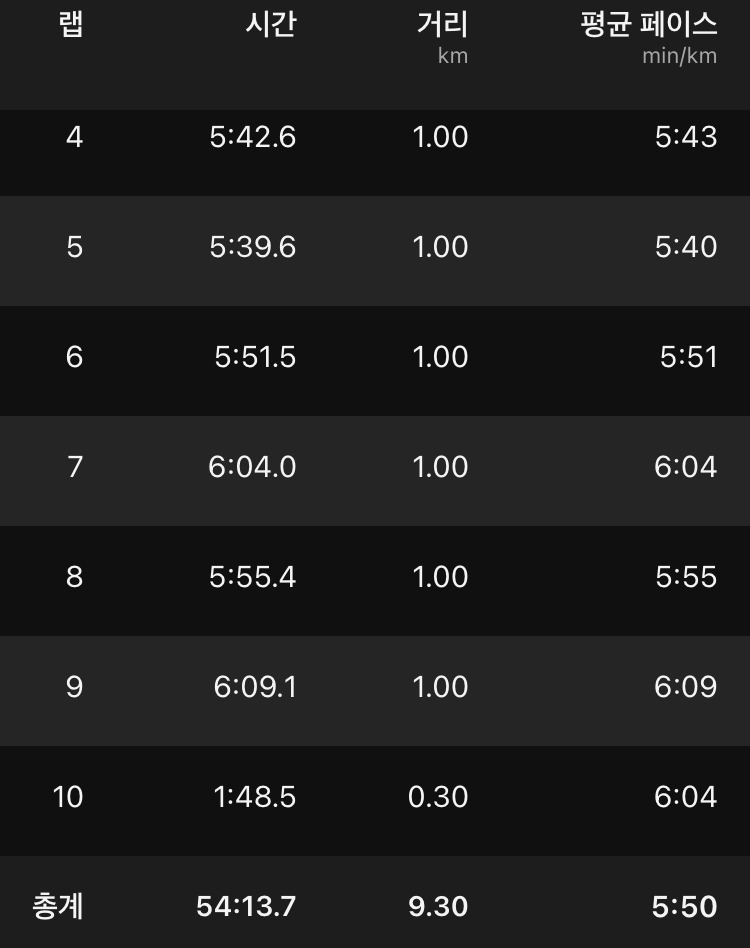 가끔 컨디션이 좋지 않을 때 더 욕심을 내는 경향이 있어 더욱 욕심을 경계하며 달려야 했고 심박수와 케이던스까지 고려하면서 달려야 하기에 더 집중해야만 했다. 또한 이렇게 케이던스가 낮을 때 쉽게 부상이 올 수 있어서 부상까지 주의하면서 달리는 것이 한 뼘 더 성장한 러너의 숙명이 아닐까 한다. 달리기는 그저 단순하게 표현하면 빠르게 걷는 것이라고 할 수 있지만 보폭, 팔치기, 주법 등 다양한 것을 고려하는 종합 걷기이라서 고민해야할 부분이 많다.