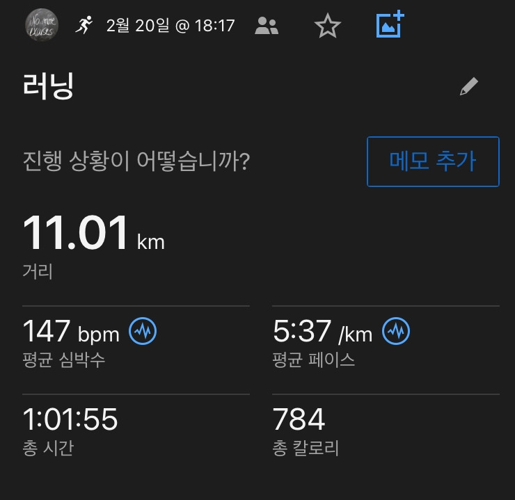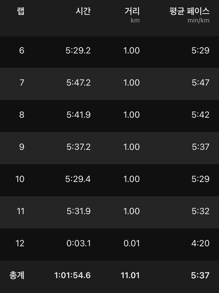 무심코 오늘은 11km의 거리를 달려야겠다는 생각이 들었는데 달릴 때는 무엇 때문에 이런 생각이 들었는지 몰랐지만 집에 와서 글을 쓰다 11km 달리기를 했는지 불현듯 떠올랐다. 오늘 아침 포스팅된 블로그 이웃님의 글을 읽고 답을 하며 나도 조만간 11km 달리기 훈련을 해야겠다고 생각했었는데 이것이 무의식적으로 발현된 것이다. 거리에 대한 욕심을 이제는 조금 내봐야겠다는 생각이 1km의 거리를 더 달려보겠다는 생각으로 발전해 11km 달리기를 만들었다.