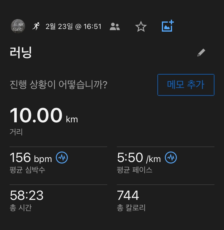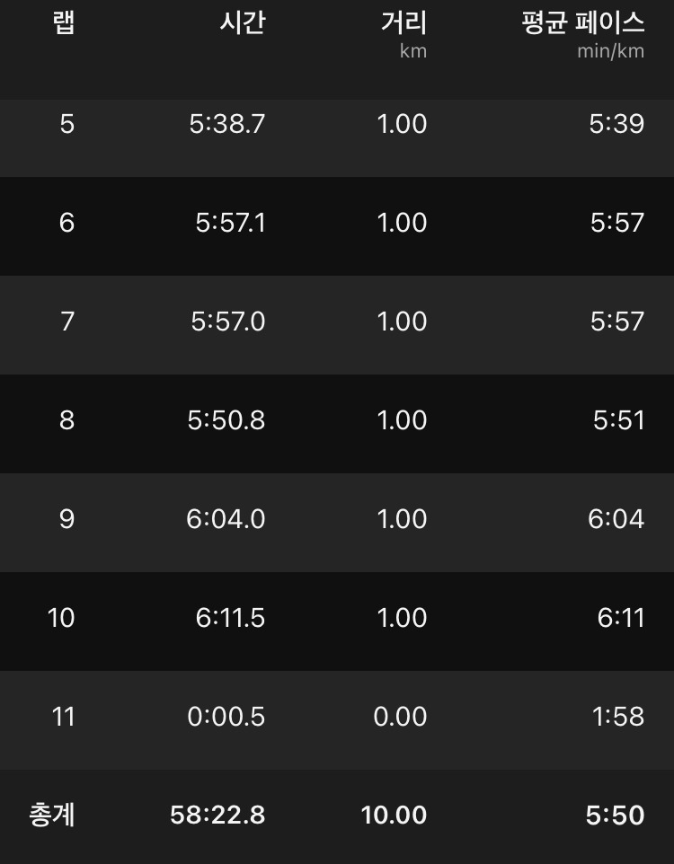 보통 일요일은 15km 달리기 훈련을 하는 날이지만 미션 런데이 10km 달리기에 도전해야 하기도 하고, 무릎의 통증도 있어 무리하지 않기 위해 10km 달리기 훈련을 했다. 달리기 전 웜업으로 4km 걷기를 한 것이 이미 무리일 수도 있겠지만, 새로운 챌린지 배지를 받았다는 기쁨으로 기분 좋게 달리기 시작했다. 바람이 많이 불었지만 미션 런데이를 완주하겠다는 일념으로 달리기에 집중했고, 미리 정해놓은 코스를 달리며 페이스보다는 부상 없이 완주하는 목표를 달성하기 위해 노력했다.