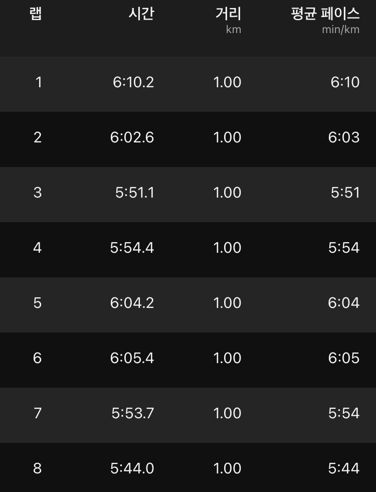 화요일 달리기 기록을 보면서 나에게 맞는 페이스를 찾았다는 기쁨보다는 현저히 낮은 케이던스를 보면서 어떻게 개선해야 하는지 고민하며 페이스와 케이던스에 대한 고민이 깊어졌다. 여기에 무릎통증까지 더해져 휴식의 필요성이 더해지는 순간 한번 해봤다는 경험은 고민의 시간을 줄여준다. 이미 한 번 해봤으니까 다시 한번 더 시도해 보는 것은 보다 작은 용기와 결단을 필요로 하기에 처음처럼 고민하지 않아도 된다. 어쩌면 고민할 필요도 없이 막무가내로 달려도 될 정도로 한 번 해봤다는 경험의 가치는 실로 경이롭다.