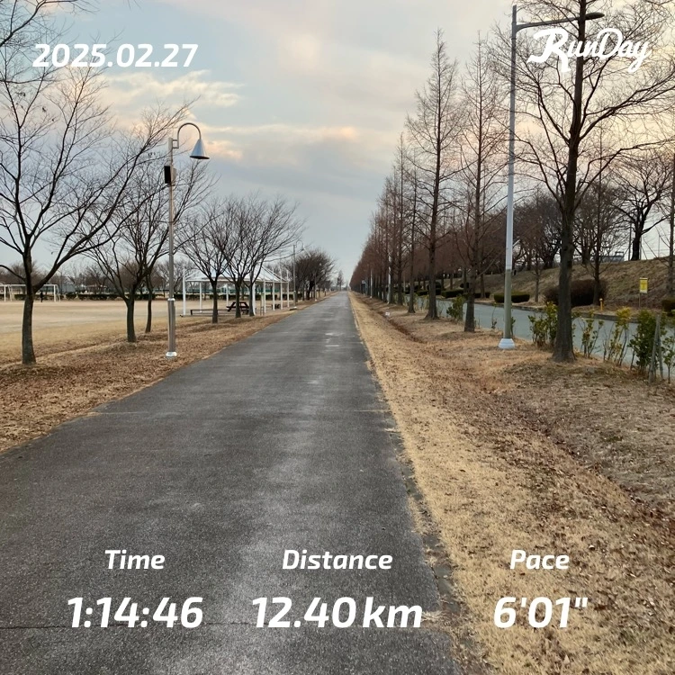 한 번 달려본 코스라서 낯섦보다는 익숙함으로 채워지는 길을 따라 한 시간 정도 달렸고 달리는 중간, 갑자기 매일 31절런을 하시는 부단히런 운영자이신 아주나이스님이 생각나서 오늘의 목표를 3.1km를 네 번 달리는 12.4km로 수정했다. 고작 0.4km만 더 달리면 되지만 10km 이상의 거리를 달릴 때는 0.1km의 거리도 고작이 아닌 엄청난 차이라는 것을 감안하면 쉽지 않은 결정이었다. 그래도 달릴 수 있을 때 달려보다는 심정으로 최선을 다해 달렸다.