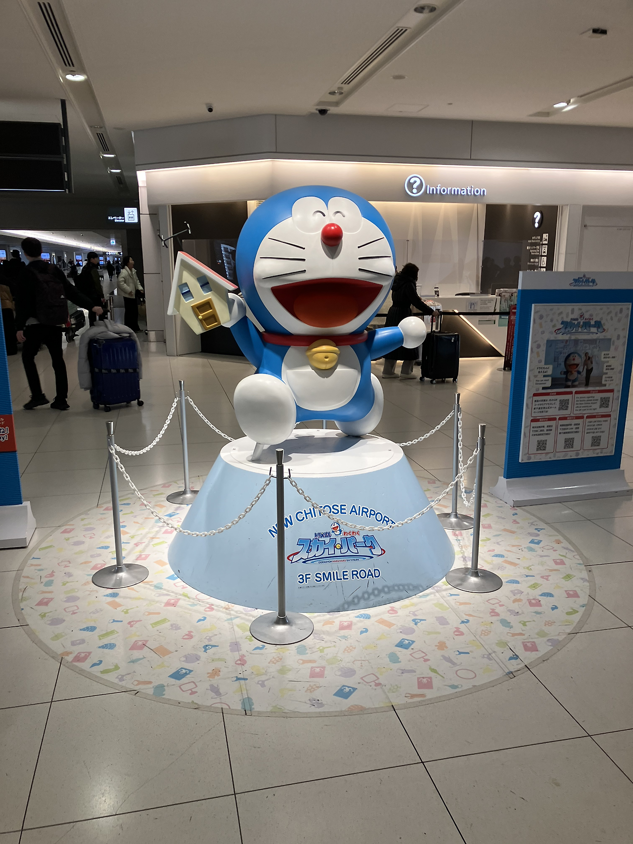 출국 수속을 하면서 살이 빠져 여권의 사진이랑 조금 달라 별도의 출국 절차를 받는 해프닝이 있었지만 출국 수속을 마치고 탑승할 수 있었다. 동체착륙과 화재 등 각종 비행기 사고에 대한 우려 때문에 탑승구 바로 앞자리에 예약해서 빠르게 자리에 앉은 후 책 읽기에 집중했다 무사히 이륙하고 2시간 여를 비행하여 홋카이도의 관문인 신치토세 공항에 무사히 착륙했고 홋카이도 입국 철자도 빠르게 진행하여 도라에몽을 만날 수 있었다.(신치토세 공항을 나오면 가장 먼저 볼 수 있는 것이 도라에몽이다)