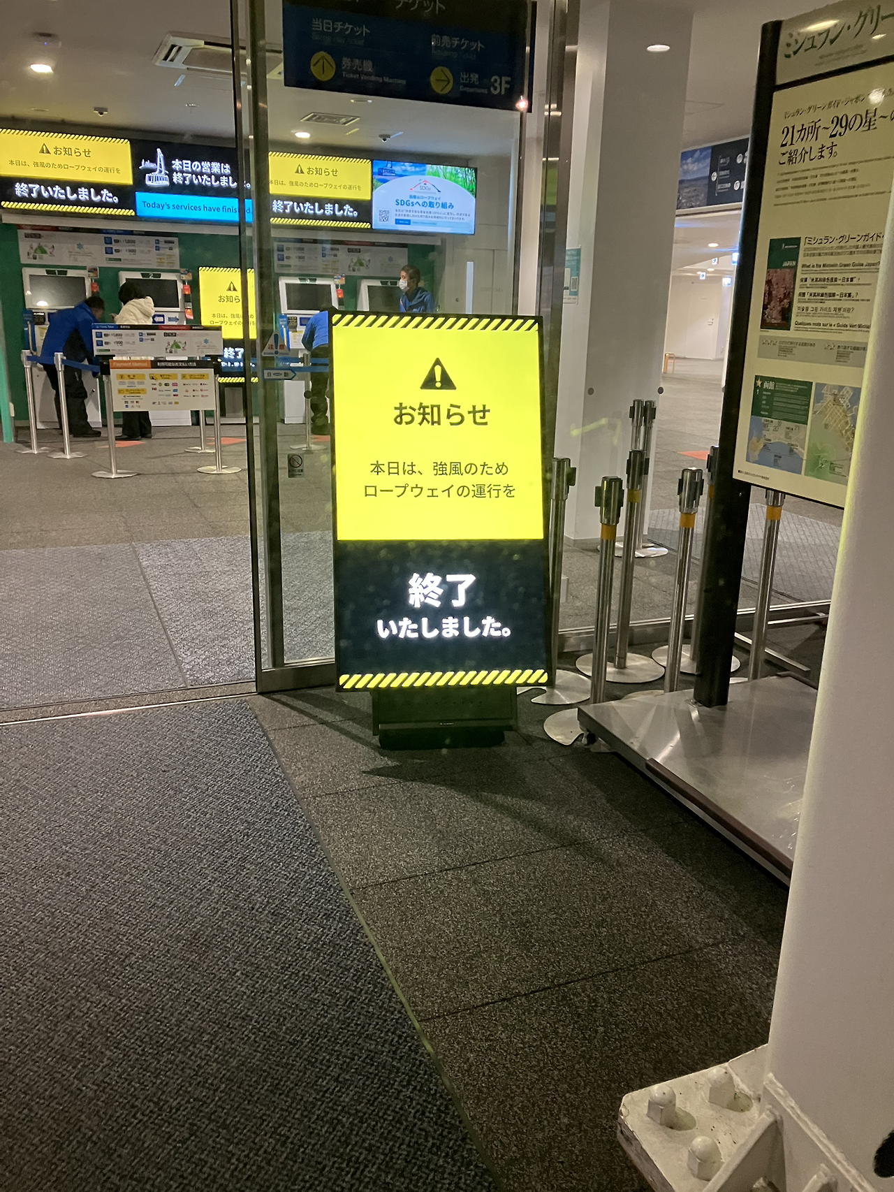 허기를 참지 못하고 우리나라 고속도로 휴게소와 비슷한 SA(Service Area)에서 샌드위치와 삼각김밥으로 간단하게 요기를 한 후 하코다테로 향했고 세계 3대 야경인 하코다테 로프웨이에 도착했지만 평일에다 강풍으로 인해 운행 마감되었다. 홋카이도 여행이 처음인 Y에게 하코다테 야경을 보여주고 싶었지만 아쉬운 마음을 가득 안고 아사히카와에서 맛본 양고기를 먹으러 징기스칸으로 향했다.