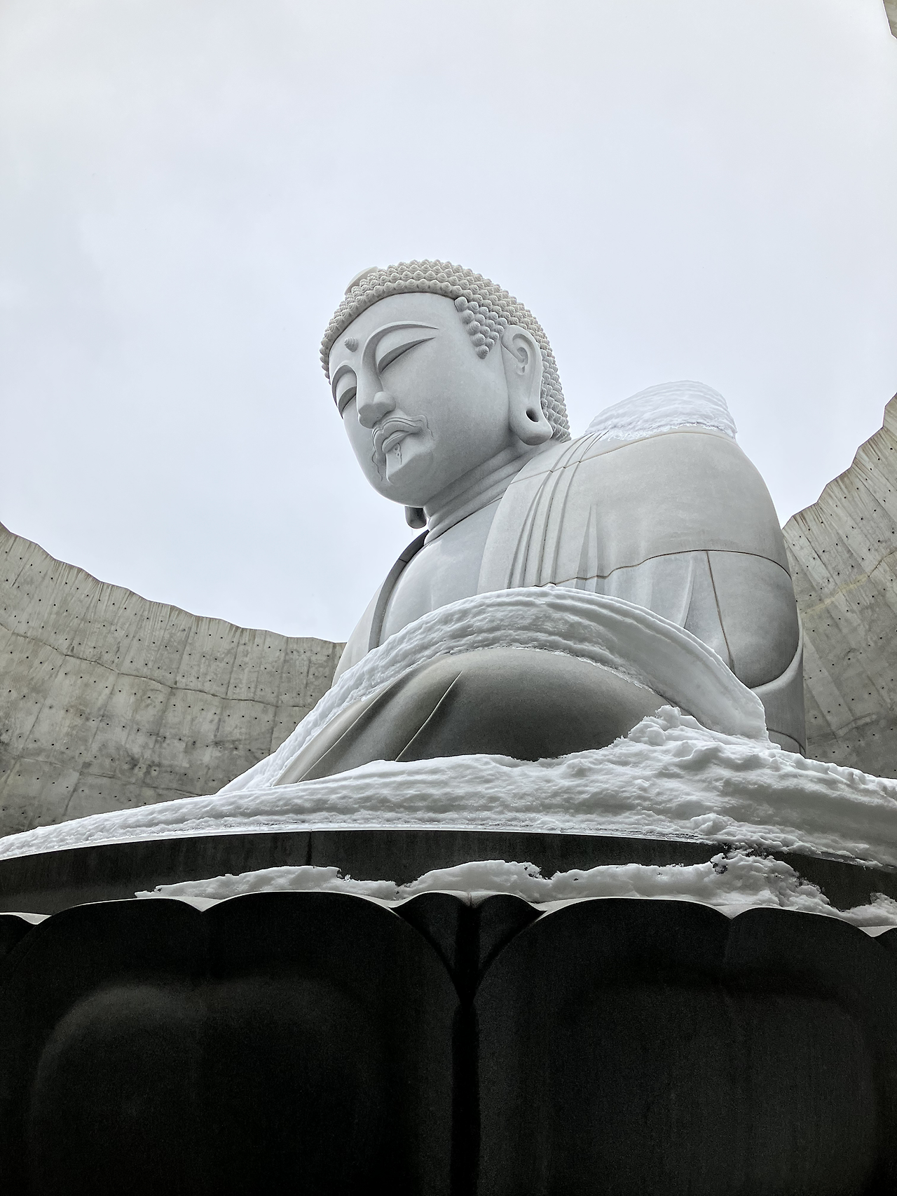 이런 간절함을 시코츠 호수에 내려놓고 다음 일정은 삿포로시 외곽에 있는 부처의 언덕으로 향했다. 지난 10월 홋카이도 여행 때 간발의 차이로 문이 닫혀 방문하지 못했던 부처의 언덕은 건축계의 마에스트로, 안도 타다오의 섬세함을 느낄 수 있는 건축물이다. 홋카이도 동부에 있는 물의 교회와 함께 안도 타다오의 건축물로 유명한 부처의 언덕은, 두대불전이라고 불리기도 한다.