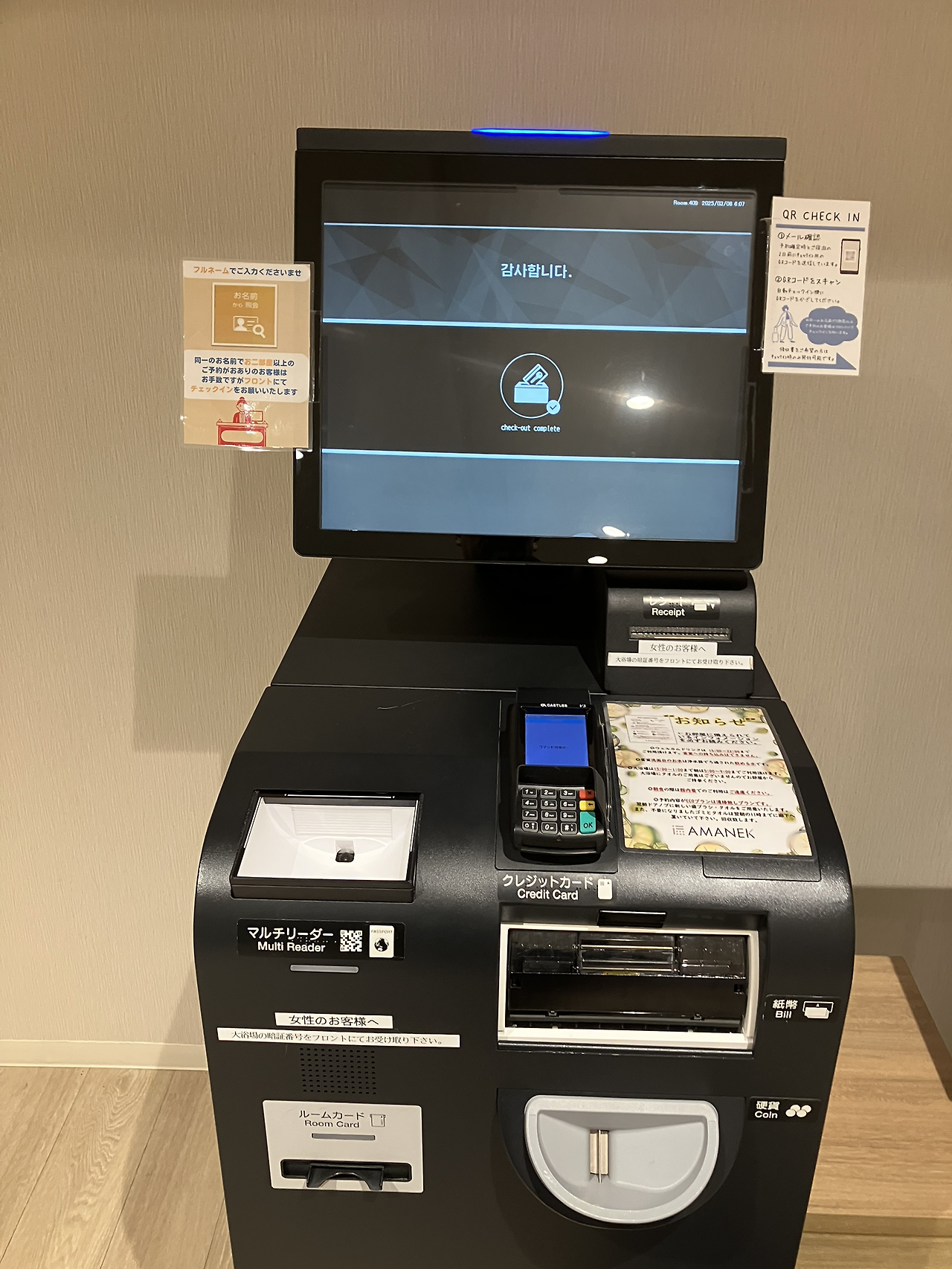 아침잠이 많은 Y도 배려해 줘서 모험을 강행할 수 있었고 전날 일정이 변경되어 Y에게 보여주지 못했던 흰 수염폭포로 향했다. 이른 시간이라 숙소에서 키오스크로 셀프 체크아웃하며 누군가 일본은 아직도 현금 사용만을 고수하는 아날로그의 나라라고 했던 글이 떠올랐다. 한국처럼 식당에서도 각자의 테이블에 앉아 키오스크로 주문하는 시스템을 서서히 적용하고 있고, 카카오페이로도 결제할 수 있는 유통 환경의 변화를 직접 경험하니 과연 일본이 아직도 아날로그의 나라인가라는 생각이 들었다.