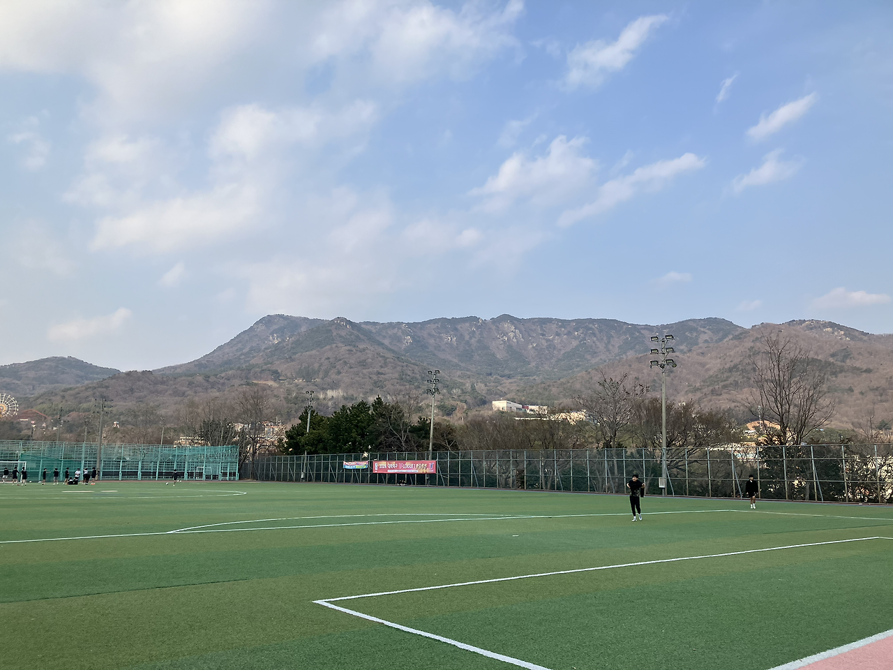 오랜만에 학교에서 매일의 루틴을 할 생각을 하니 마치 푸릇했던 새내기의 시절로 돌아가는 회상을 하며 도착했고, 아내를 사무실에 내려준 후 바로 운동장으로 향했다. 축구장 옆에 우레탄으로 포장된 육상 트랙이 있어 몇 번 걸었던 적이 있었지만 처음으로 달리기를 하는 곳이라 익숙함과 낯섦이 공존하는 기분은 말로 표현하기 힘들었다.