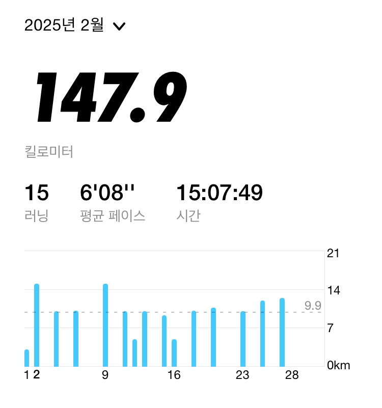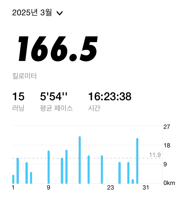 그날을 기다리며 3월에는 147.9km를 달렸던 2월보다 조금 더 달릴 수 있었고 총 166.5 km 달렸다. 고무적인 점은 2월보다 페이스도 빨라졌고 달린 시간도 늘어났다는 것으로 욕심을 내지 않아도 자연스럽게 페이스과 기록이 좋아지고 있음을 느껴 안심된다. 무리해서 달리기보다는 지금 이 순간에 집중하며 나에게 맞는 달리기를 해야 함을 느낀다.