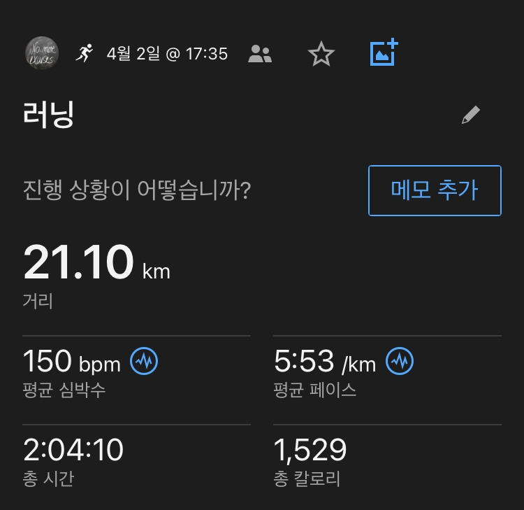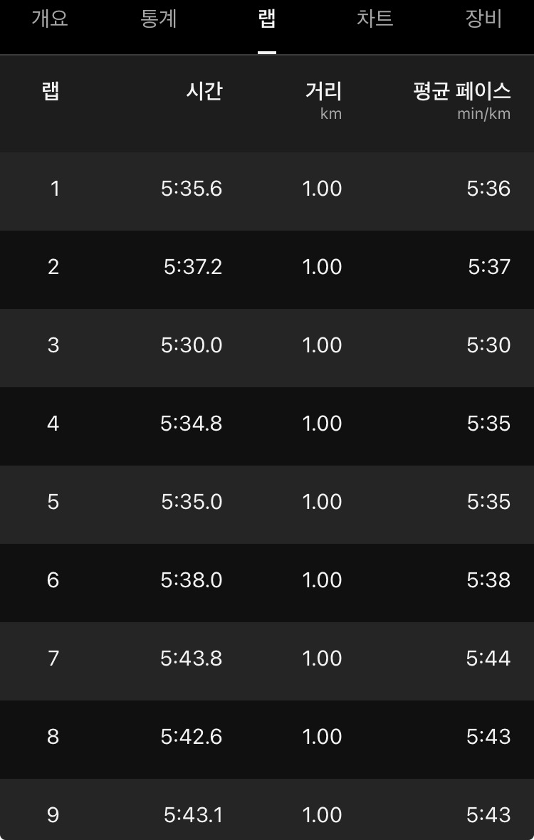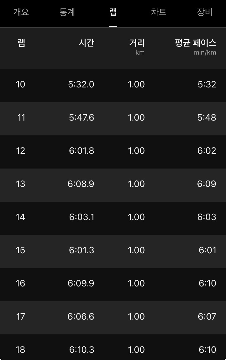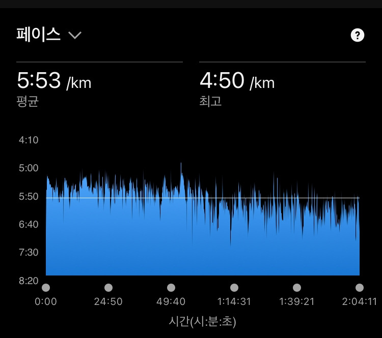 지난주 2시간 안에 완주했던 좋은 기억이 있어 나름 신기록 경신에 대한 희망을 가졌지만 아직 회복이 덜된 몸은 정직했다. 아쉽게 2시간 4분으로 2시간 안에 완주하지 못했지만, 처음 평일에 하프 마라톤 달리기를 완주했다는 사실에 의미를 두며 빠른 회복을 위해 간단히 쿨다운을 한 후 곧장 귀가했다.
