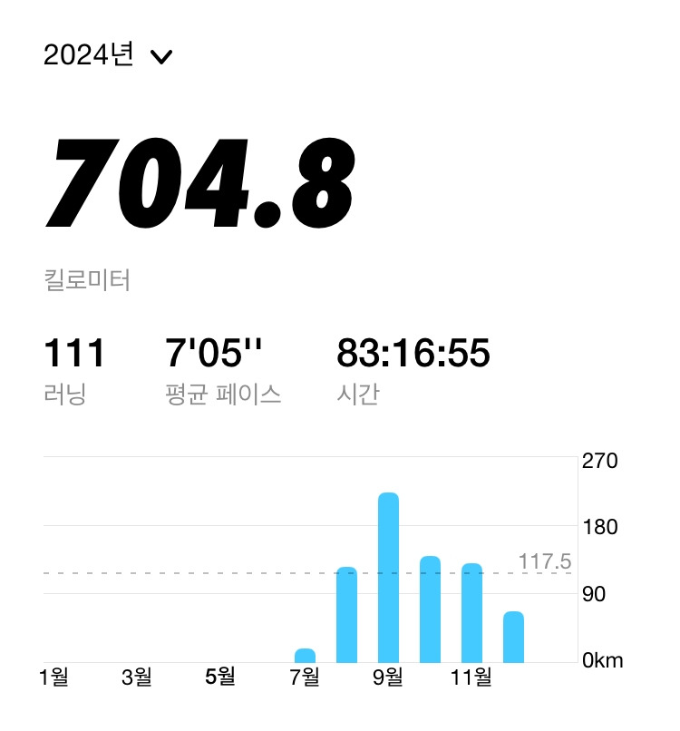 작년과 큰 차이는 없지만 굳이 비교하자면 작년에는 동일한 거리를 매일 달렸지만 올해는 그날 몸 상태를 확인하고 10km 이하의 거리를 달리는 단거리와 그 이상을 달리는 장거리로 구별하여 달린다는 점이다. 휴식도 달리기의 과정이지만 하프 마라톤 훈련을 한 후 그 다음날 살짝 근육이 뭉친 상태에서 리커버리 달리기를 하면 신기하게도 달려진다는 점이 정말 놀랍다. 대신 조깅에 가까운 수준의 페이스로 달리면서 뭉친 근육을 풀어준다.
