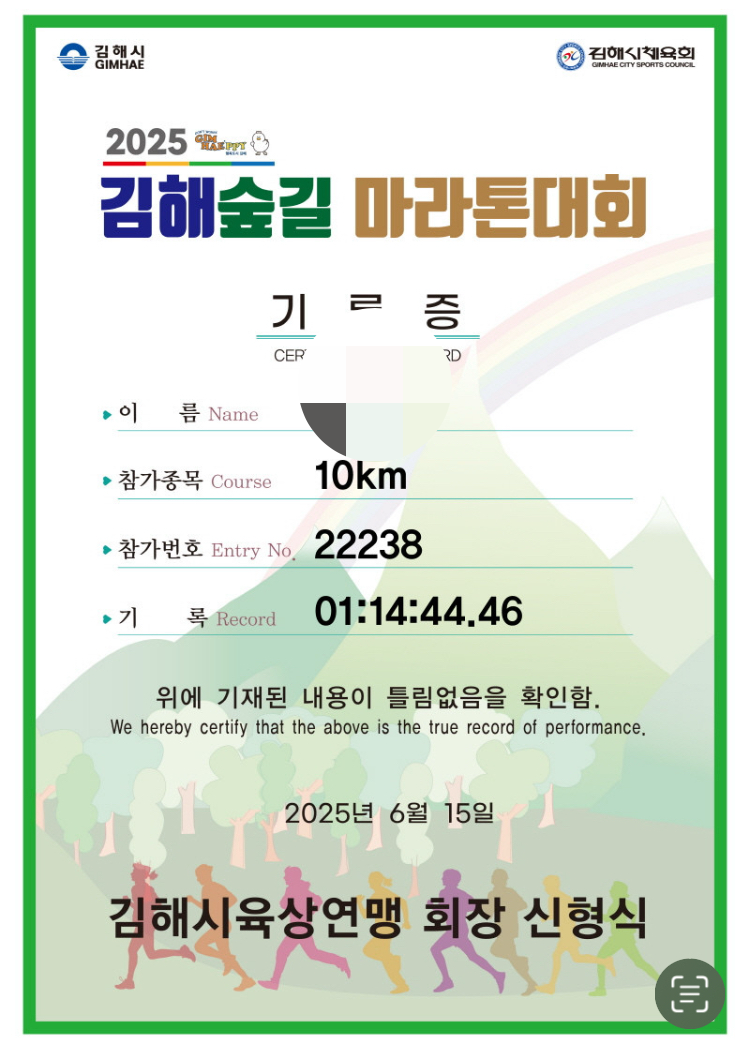 대회는 이미 끝났고 앞으로 수많은 대회를 내 구미와 맞게 고르며 새로운 준비를 할 수 있다. 아쉬움은 저 멀리 던져 버리고 새로운 도전에 매진하며 내년 김해 숲길마라톤에서는 하프코스 완주를 하고 싶다는 또 다른 꿈을 꾼다. 이 꿈을 현실로 만들기 위해 한 달에 한 번은 트레일러닝 훈련을 하며 김해 숲길마라톤 코스를 달릴 것이다. 2026년에는 완주의 기쁨을 누릴 수 있도록 미리 준비를 하며 트레일런으로 나의 달리기 세계를 확장할 것이다.