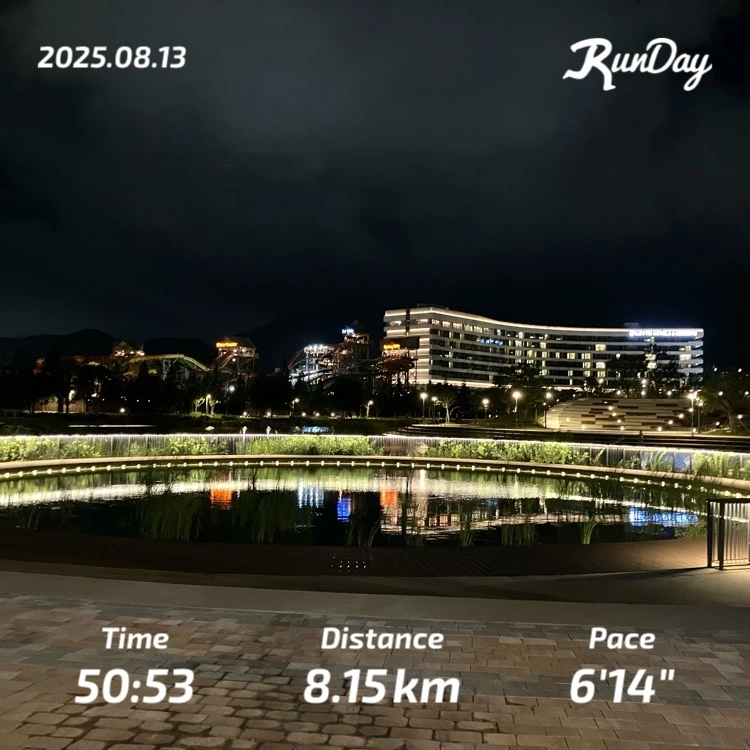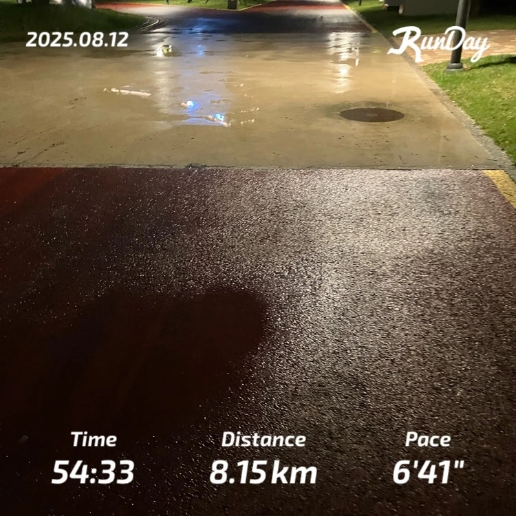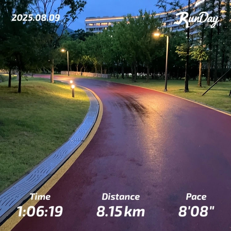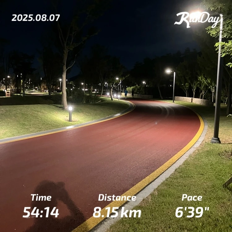 12시가 되기 전까지 미션을 수행해야 하기에 마치 신데렐라가 된 듯한 마음으로 최선을 다해 달렸고, 낮과 달리 기온이 떨어져 덥지 않았지만 코를 막아버리는 습도 때문에 달리기 쉽지 않았다. 그럼에도 불구하고 12시가 되기 전 8.15km의 거리를 완주하며 2025년 815런 도전의 마침표를 찍을 수 있었다.