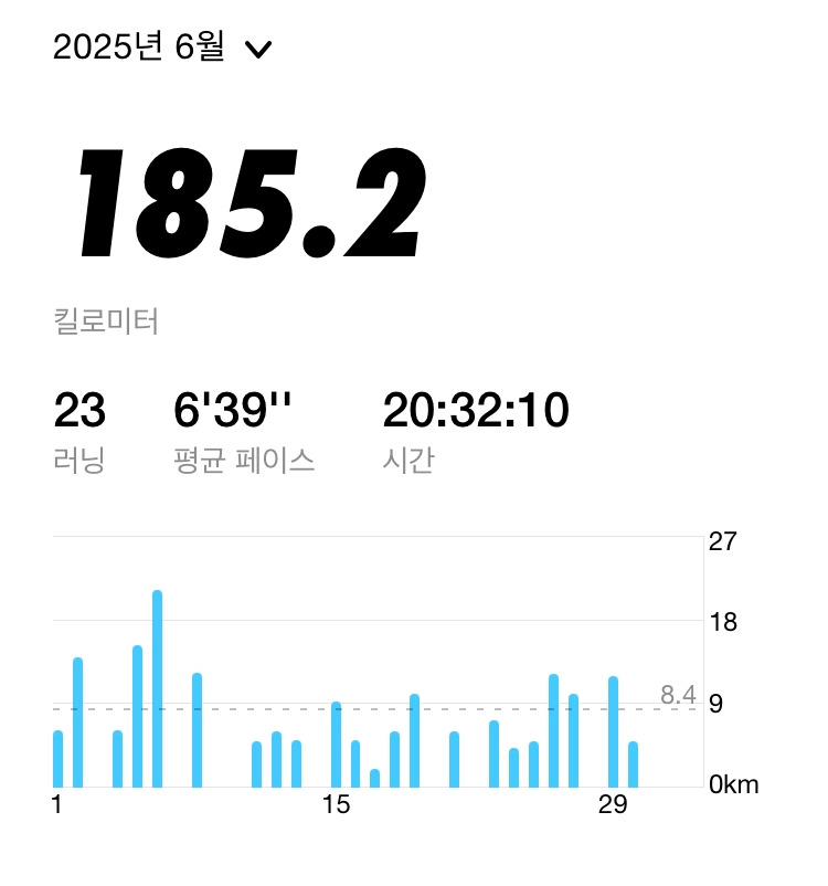 10월에 참가 예정인 하프 마라톤을 준비하기 위해서는 마일리지 300K 달성이 꼭 필요한 시점이기에 9월에는 꼭 마일리지 300K를 달성하고 싶다. 단순 계산으로 매일 10km의 거리를 달리면 달성 가능하기에 또 한 번의 30일 매일 달리기 프로젝트에 도전하려고 한다. 성장하고 싶다는 욕망을 달리기를 통해 표출시키며 성장통을 이겨낼 것이다.
