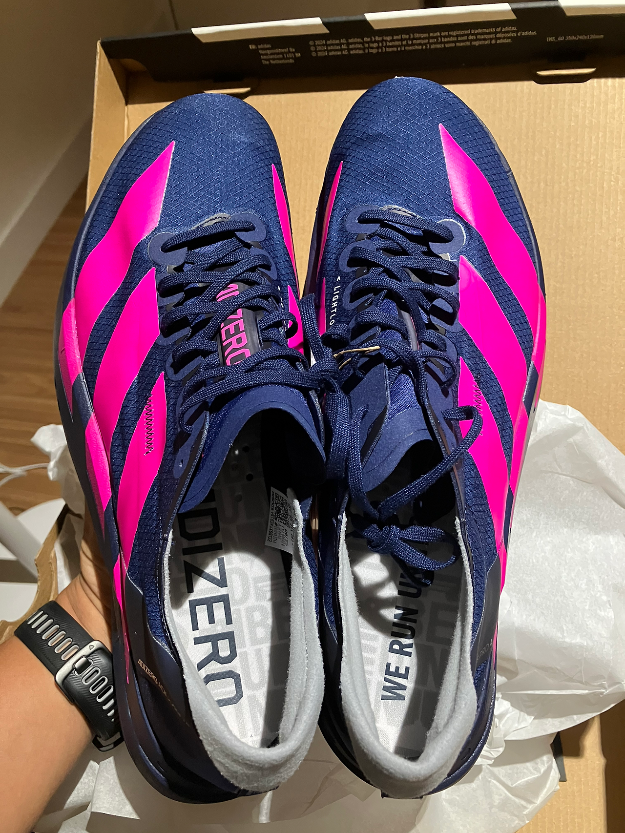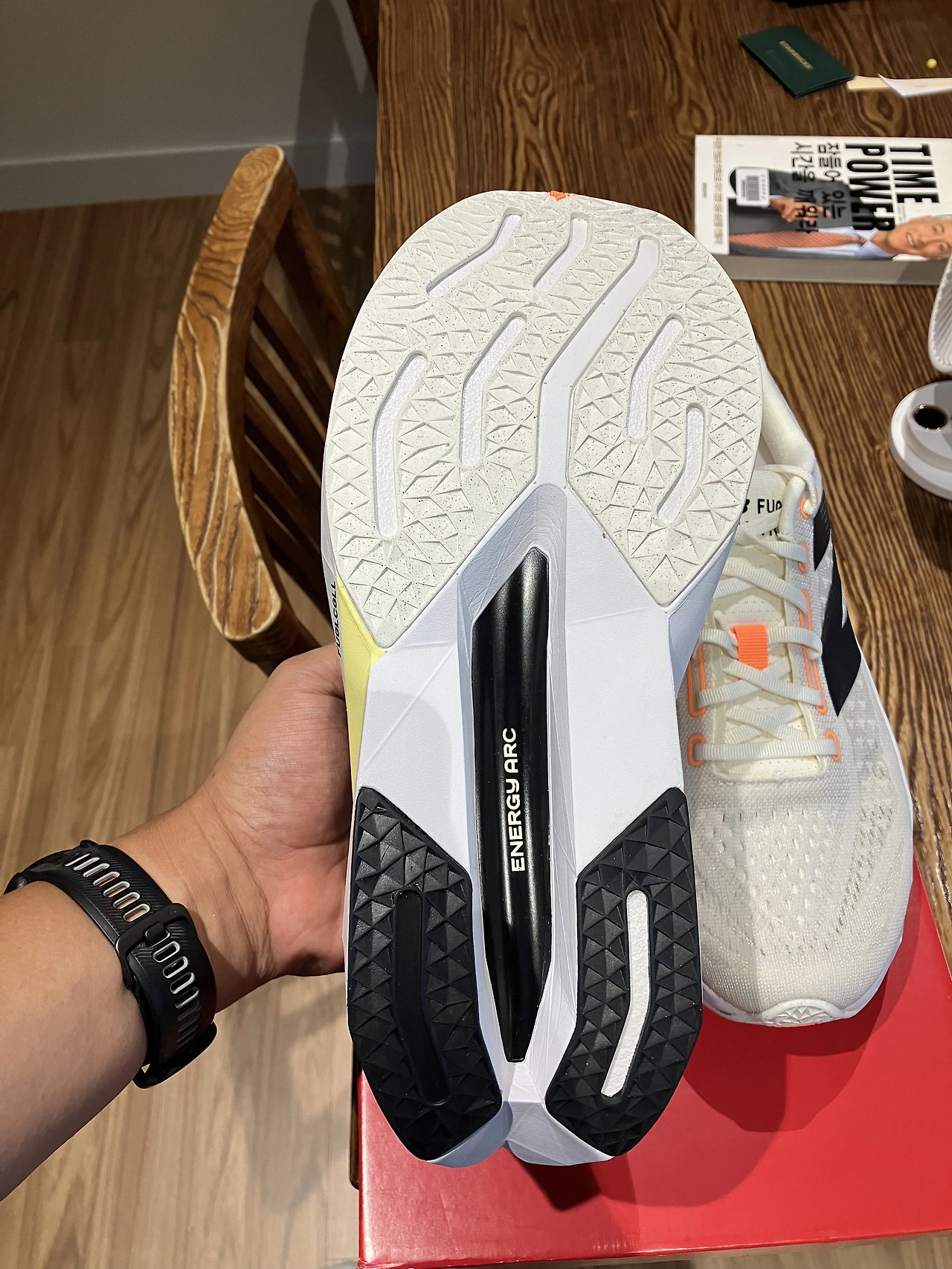 42.195km의 거리를 나와 함께 하는 러닝화이기에 내 발을 편안하게 해주었으면 하는 바람과 함께 단 1초라도 빠르게 결승선을 통과할 수 있도록 도와줄 수 있으면 좋겠다는 욕심을 더해 몇 개의 러닝화를 알아보았다. 고민 끝에 두 개의 모델을 가지고 부단히런 러닝크루 대장님께 문의드렸고, 내 생각과 같이 <아디다스 아디오스 프로 4> 모델을 추천해 주셨다. 아디다스 브랜드에 대한 안 좋은 추억이 있어 가급적이면 구매하지 않으려 했지만, 다른 러너들의 착용평을 들어보면 풀코스 대회용 러닝화로 제일 좋다는 이야기가 많아 눈여겨보고 있긴 했다.