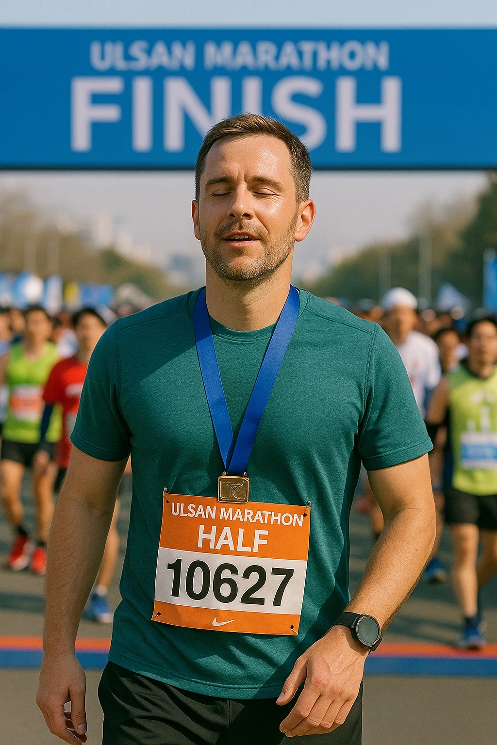 지난 일요일, 울산마라톤은 실질적인 나의 첫 하프 마라톤 도전이자 완주의 시간이었다. 사실 올해 5월 김해숲길마라톤 하프 도전의 해프닝으로 사실 두 번째 하프 코스에 도전하는 것이지만, 완주를 못했기에 울산마라톤에 임하는 마음가짐이 정말 중요했다. 꼭 완주할 것이라는 마음속 다짐으로 매일 아침 거울 속 나를 보며 긍정확언을 반복했다.