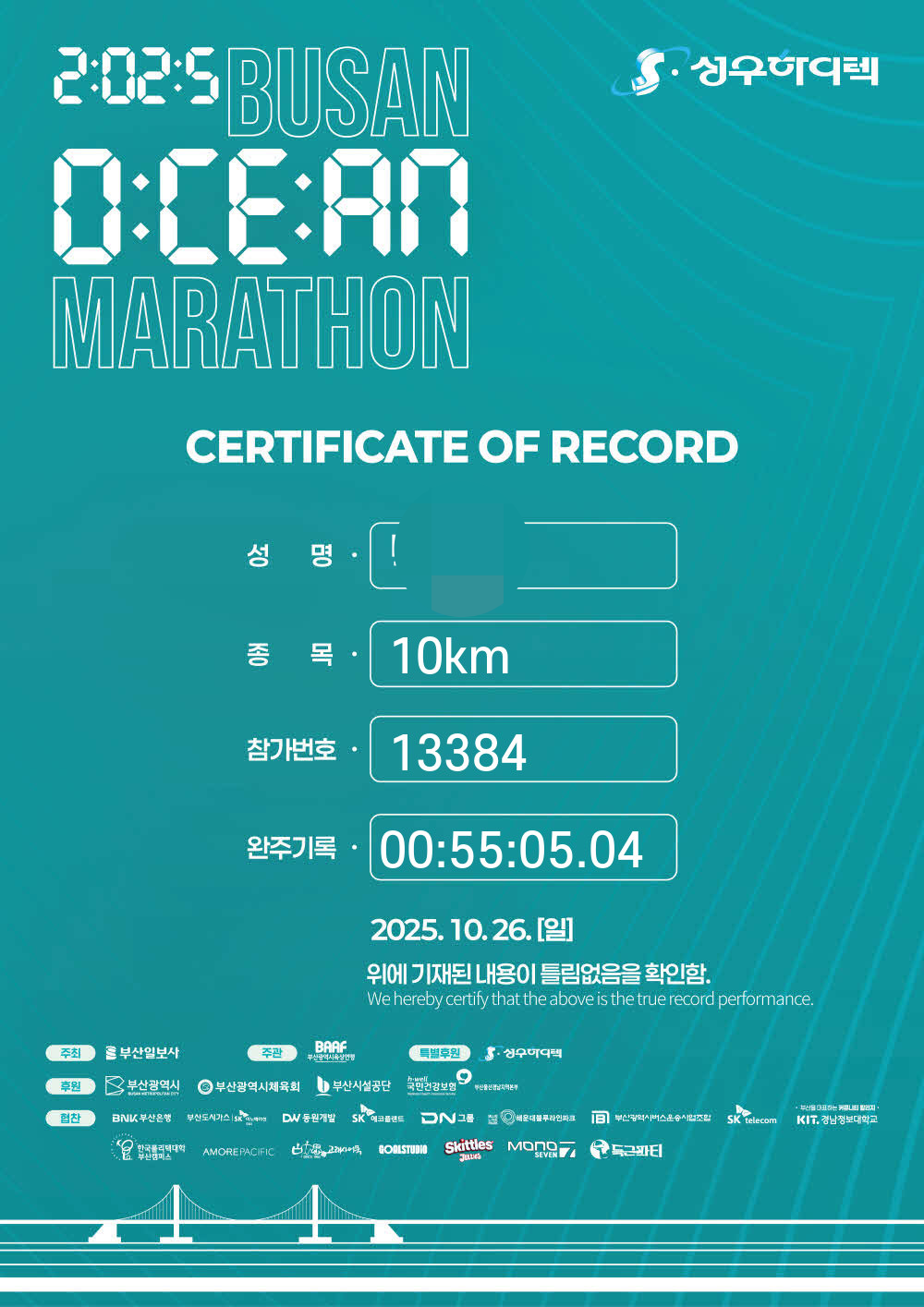 어제 부산바다마라톤에 참가했다. 다음 주 JTBC 서울마라톤 풀코스 도전을 앞두고 있어 고민을 많이 했는데 동호회에서 모두 참가하는 대회라서 응원도 할 겸, 합법적으로 광안대교 위를 달리고 싶었다. 사실 금요일 오후 부모님을 모시고 원주에 다녀왔던 터라 장거리 운전으로 인한 피로감이 있었지만 약속은 지킬 때 참된 의미를 발휘하기에 무리하지 않고 즐겁게 달려고 했다.