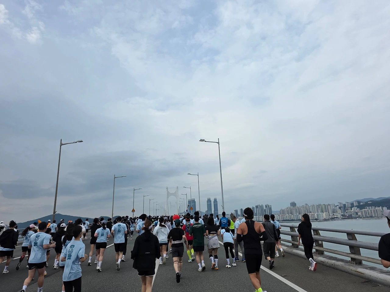 하지만 광안대교를 지났던 여느 대회와는 달리 교각으로 올라가는 오르막길을 달려가는 것이 아닌, 광안대교 상판 위에서 시작하는 대회라 내리막길과 평지가 많아 기록 세우기 좋은 'PB맛집'이란 이야기를 듣고 내 마음속에는 기록에 대한 욕심이 조금씩 커져감을 느꼈다. 지금까지 참가했던 마라톤 대회 기록이 좋지도 않지만 나는 기록에 연연하는 러너가 아니기에 안심했으나 계속 머릿속에 맴도는 것을 보면 주변에서 PB(Personal Best) 세워야 한다는 말에 현혹되는 것 같았다.