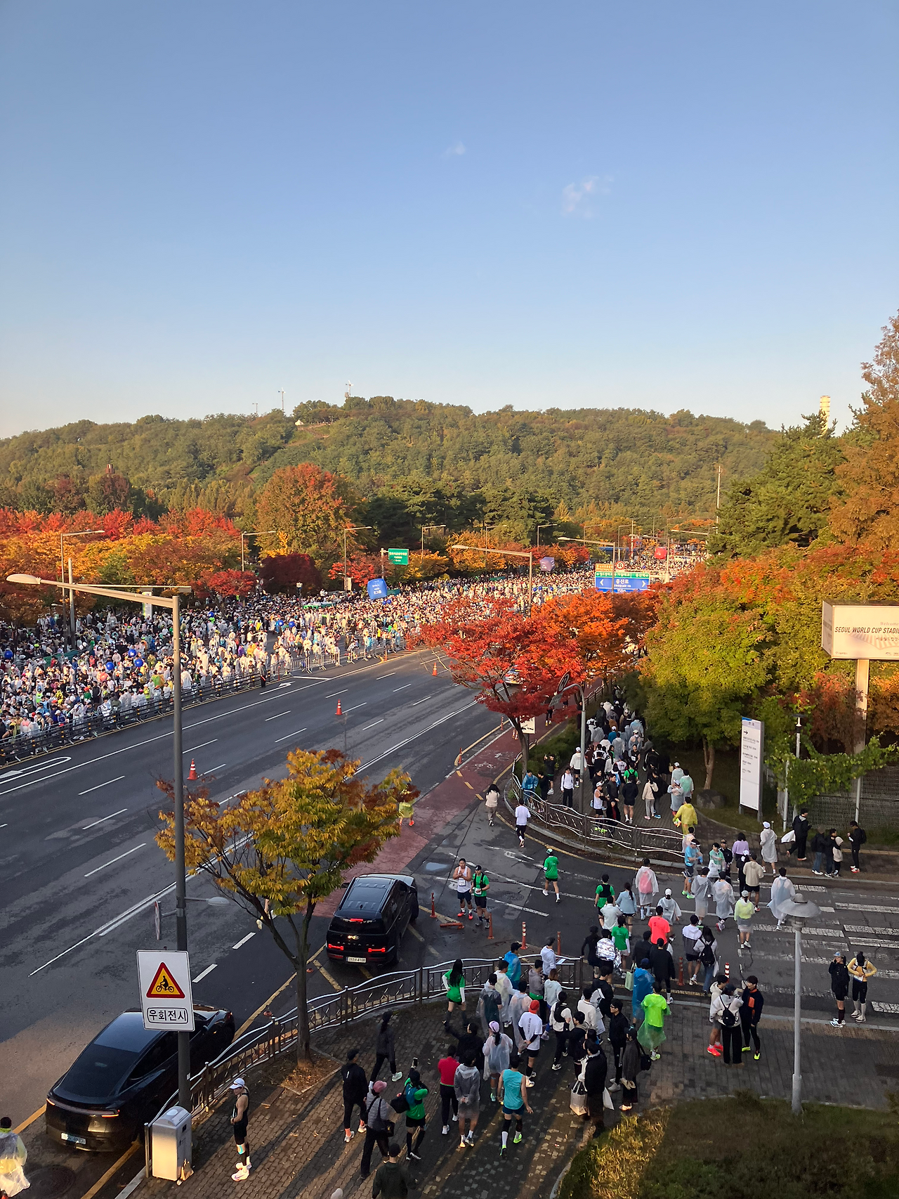 새벽 5시 가볍게 아침을 먹고 숙소를 나오며 과연 완주를 할 수 있을까 걱정되기도 했지만 여기까지 왔는데 일단 해보기로 했다. 짐보관을 위해 6시에 상암 월드컵 경기장에 도착했지만 이곳은 이미 수많은 러너들이 집결해 있었다. 우리나라 3대 마라톤 대회 중 하나라서 그런지 정말 많았다.