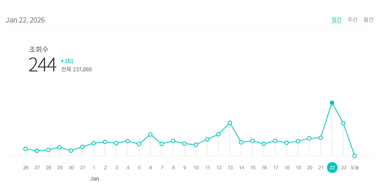 오랜만에 높은 조회수를 보면서 꾸준함의 보상에 대해 생각했다. 더 많은 글을 쓴다면 더 많은 사람들이 읽을 수 있을 것이다. 구독자의 관심을 끄는 글을 쓰기보다는 나의 생각과 경험을 담백하게 표현하는 글을 쓰는 것이 더 합리적이며 나의 창작물이 오랜 시간 관심과 사랑을 받는 비결이라 생각한다. 2026년에는 글쓰기라는 결과물을 더 많이 생산하는 생산자의 삶을 살고 싶다.