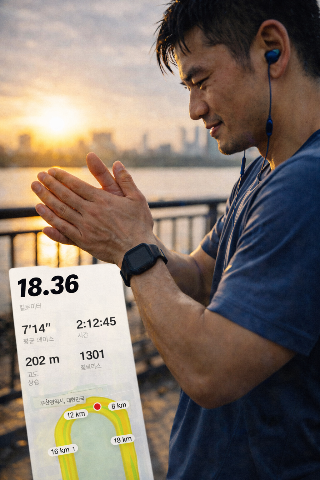 기록이 잘 나왔는지는 중요하지 않다. 페이스가 느려도, 거리가 짧아도 상관없다. 중요한 건 약속을 지켰다는 사실이다.